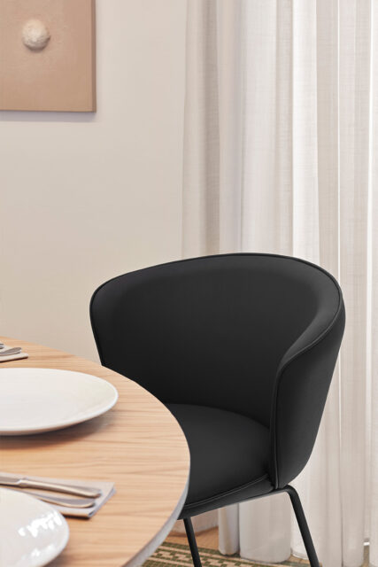 Comfort and ergonomy were key starting points for Add. The completely upholstered backrest warps around you when seating, adapting to the natural curvature of our body while permitting posture changes and moving freely in it, thanks to its wide seat.