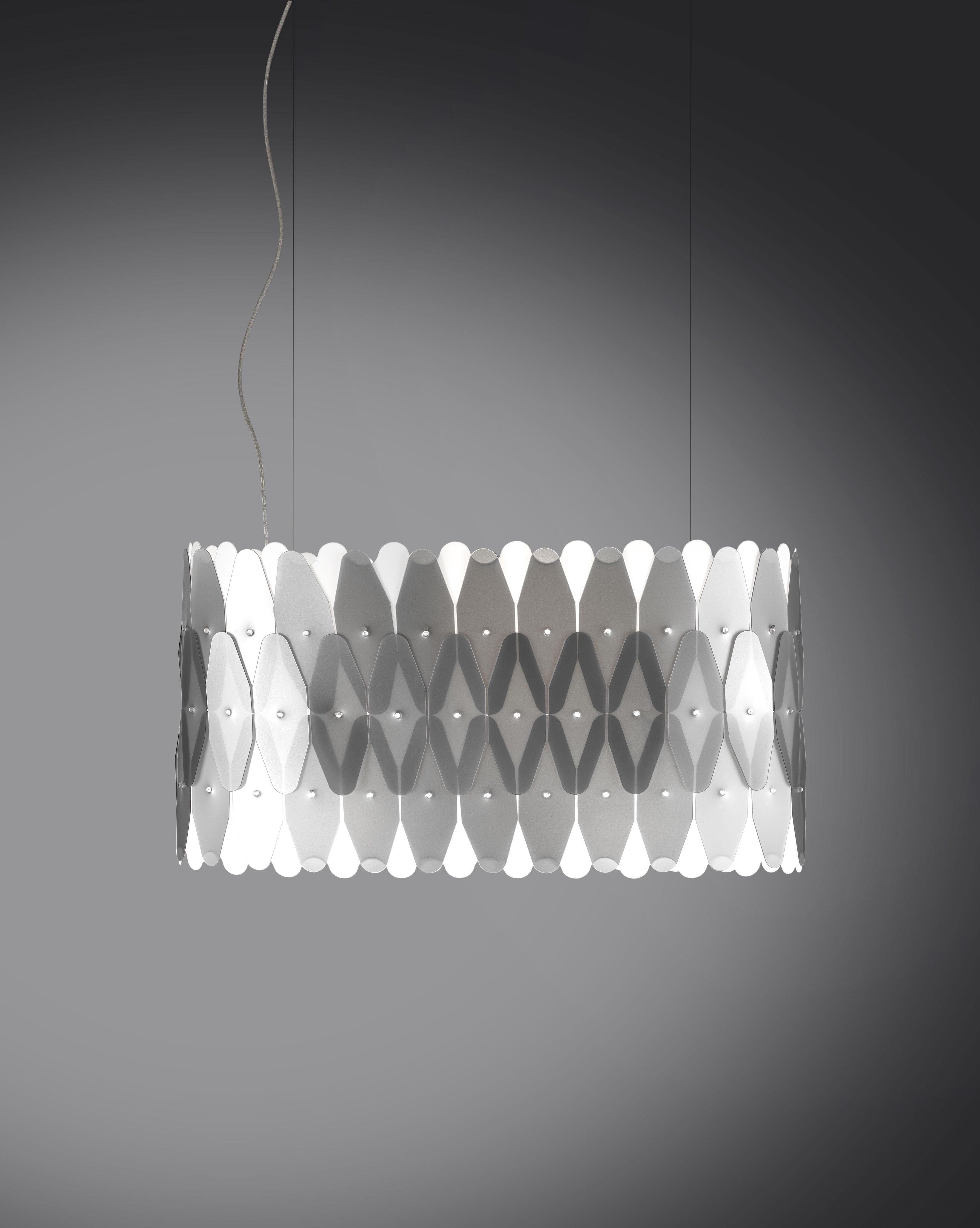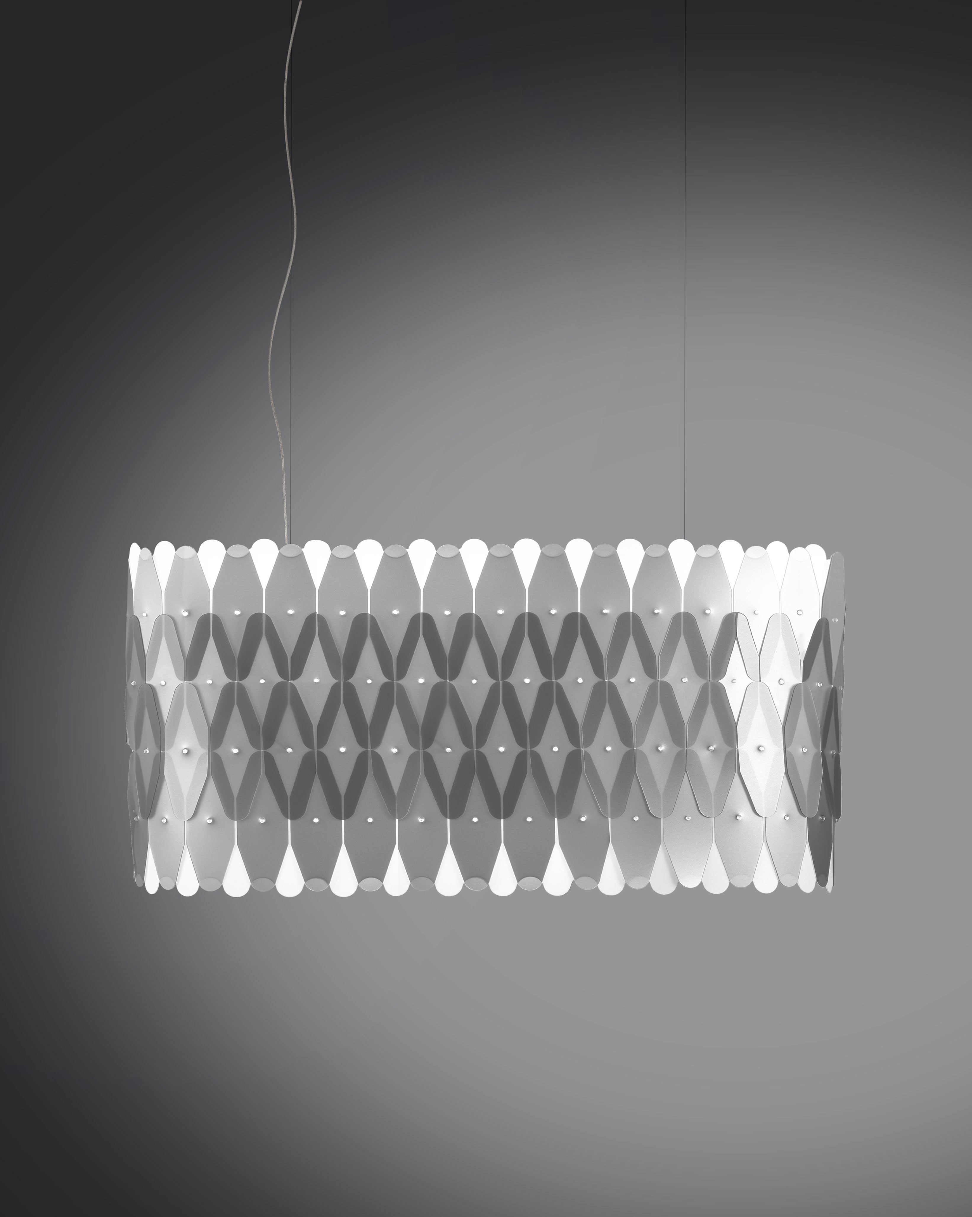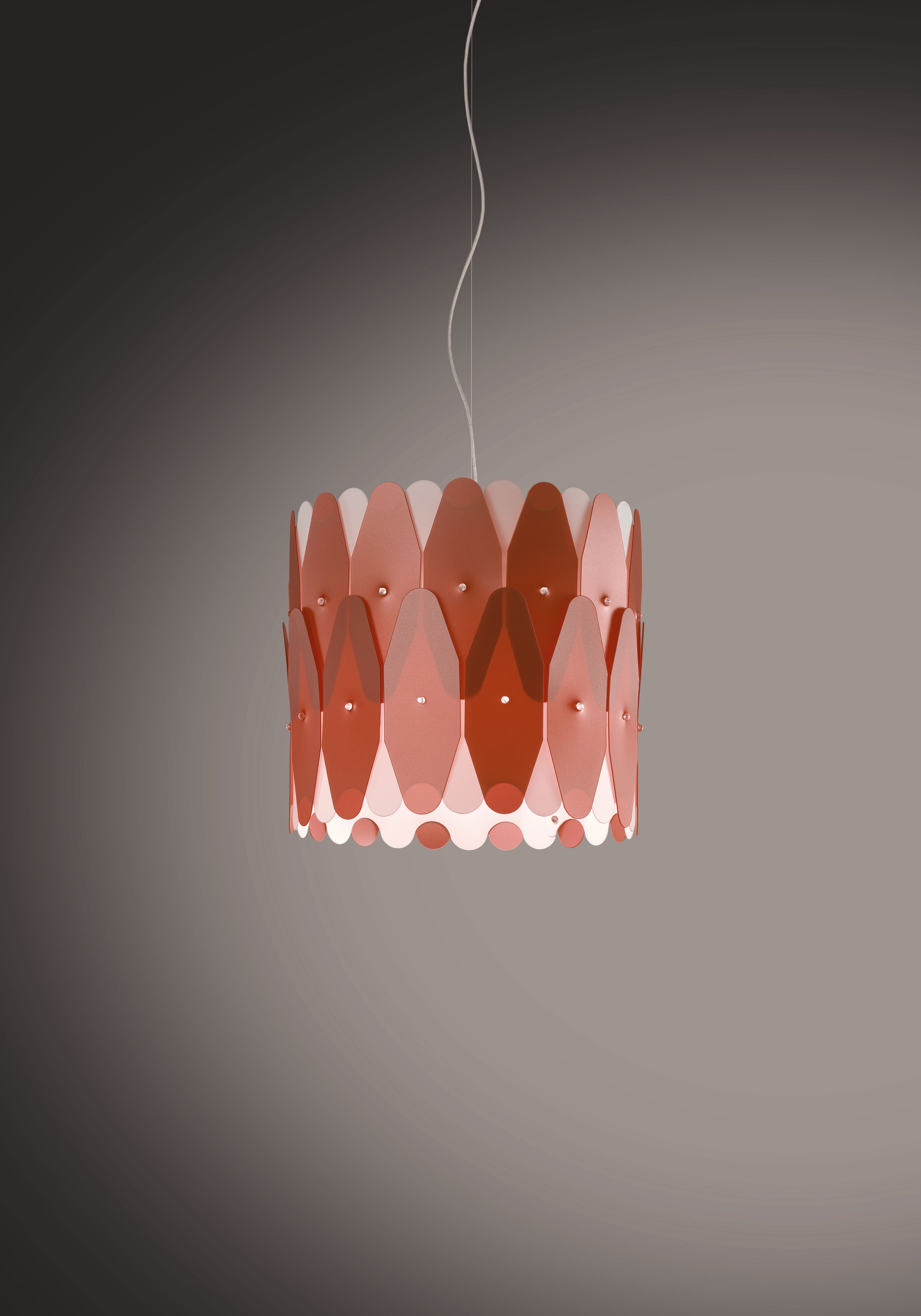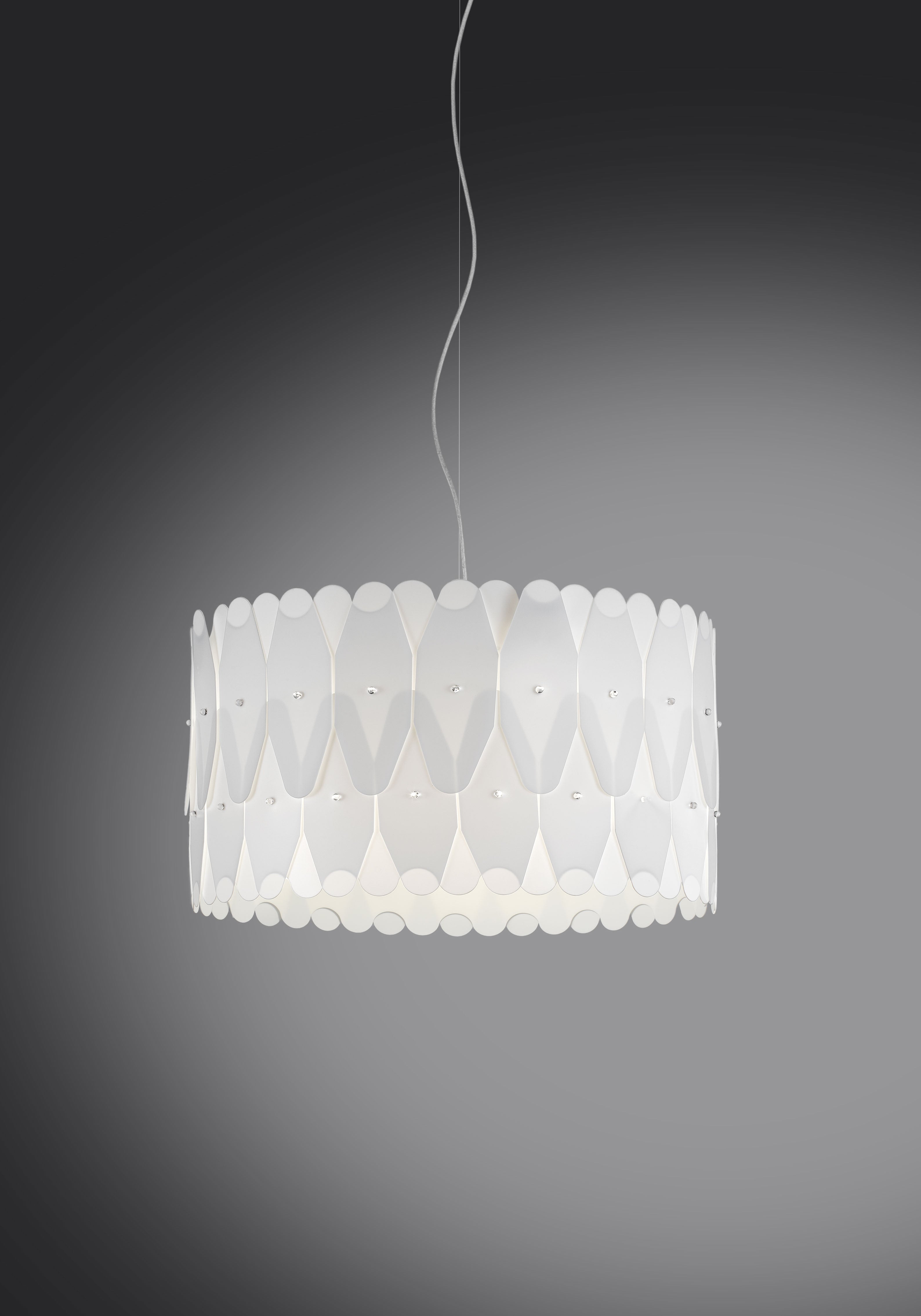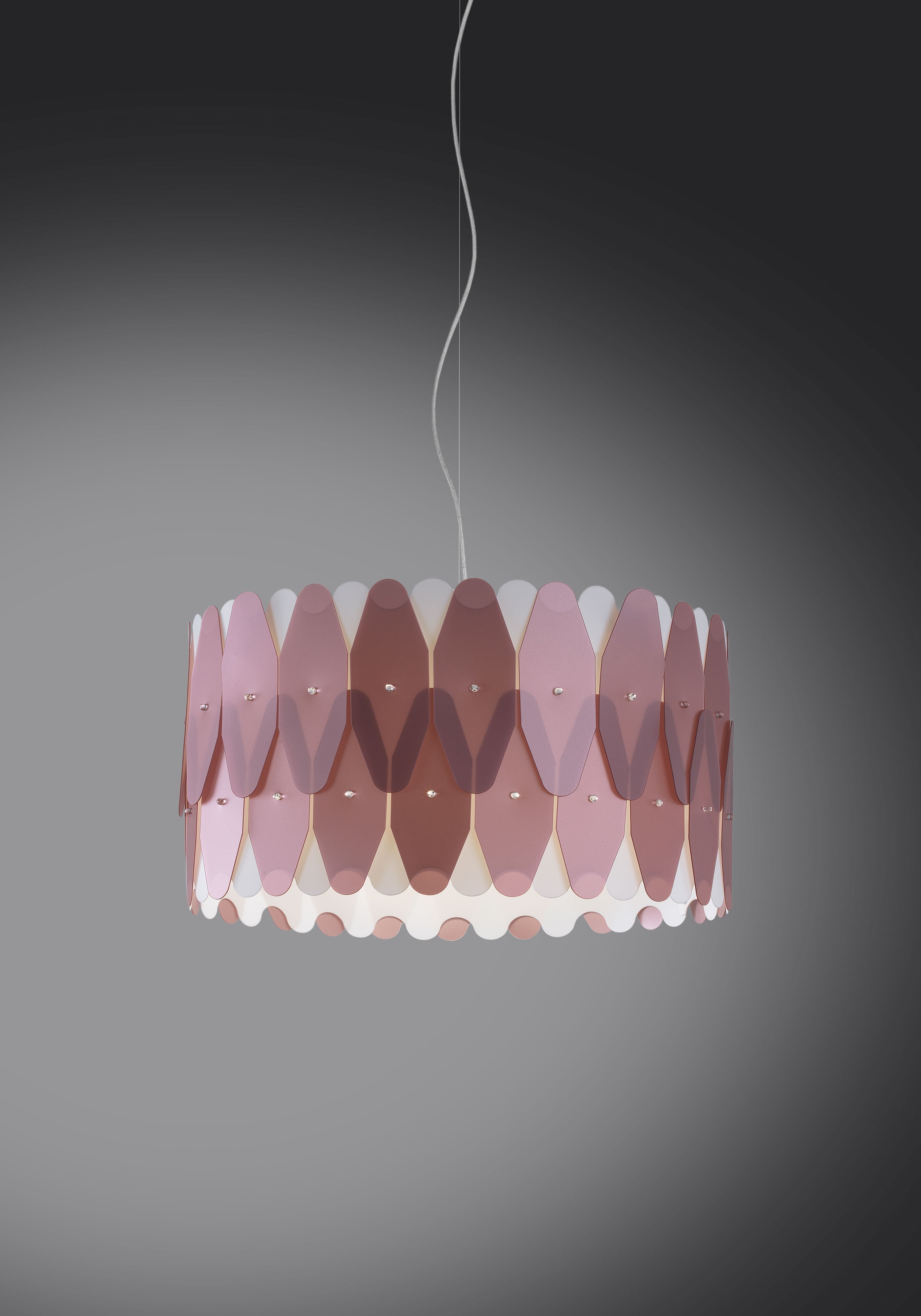 Inspired by the characteristic ceramic tiles of Lisbon, the three-dimensional structure of the Amanda ceiling lamp consists of small multi-colored "tiles" applied to an oval or circular core, which, depending on the color you choose, can give a monochrome or multi-colored effect.