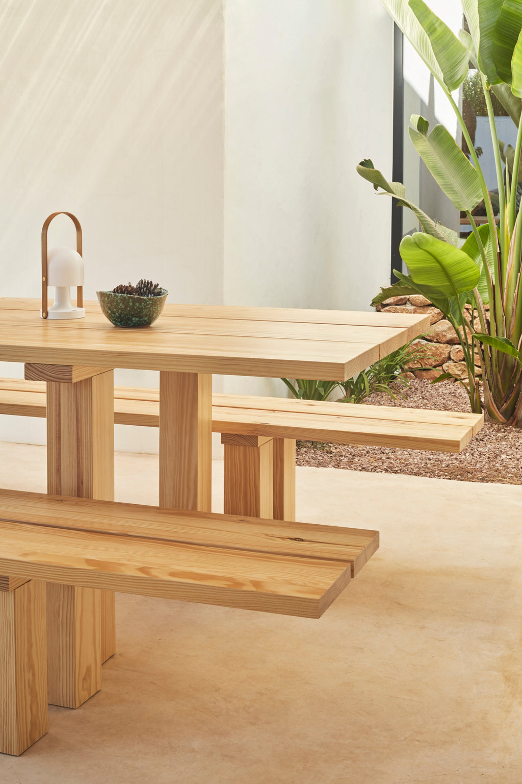 The large proportions of the Banda bench make this piece a tribute to natural wood, allowing the properties and unique character of the material from which it is made to be appreciated.