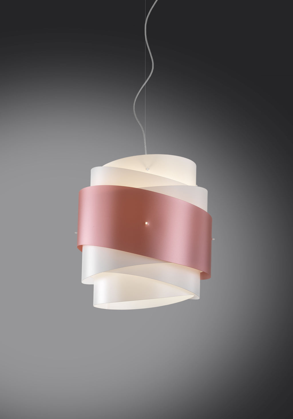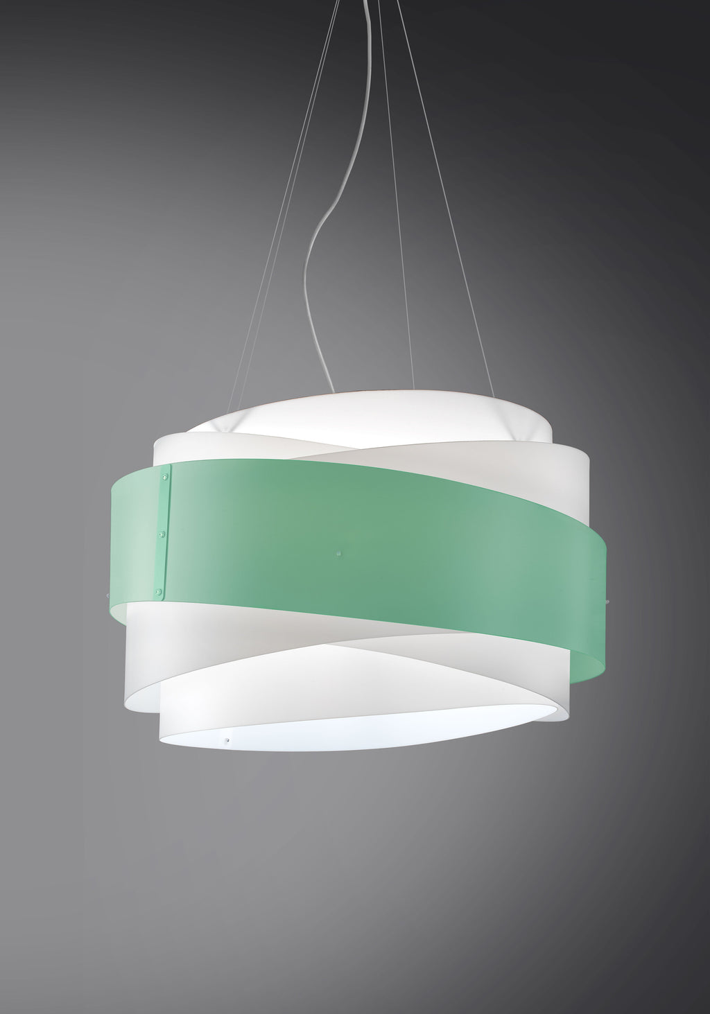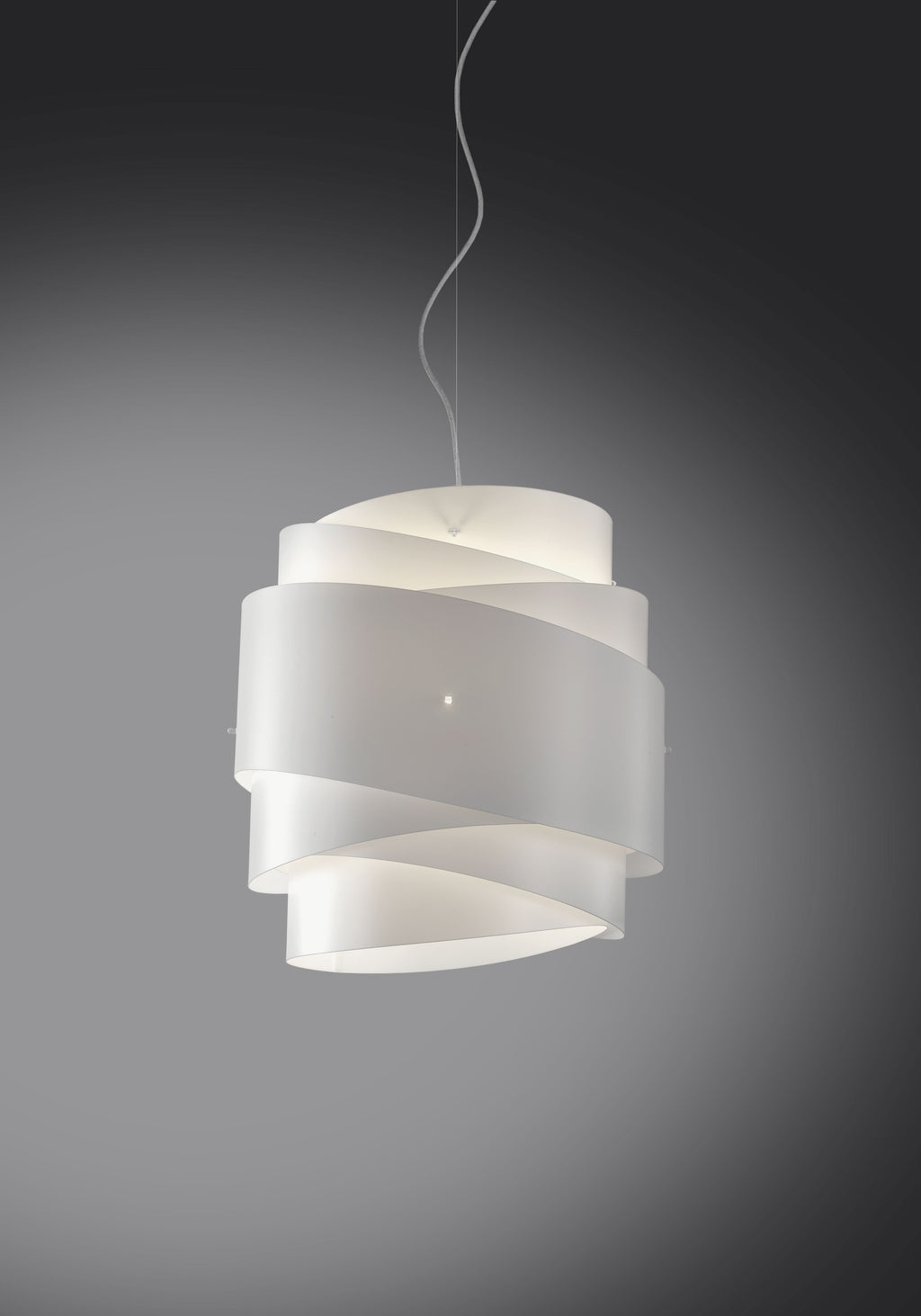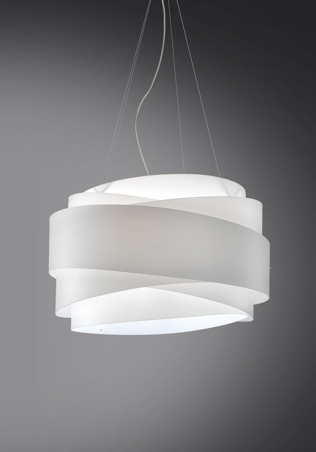 Four surfaces wrapped one on top of the other. Rhythm through the different cutting lines. Polilux™ sheets towards the edges give more momentum and diffusion to the soft and transparent light.