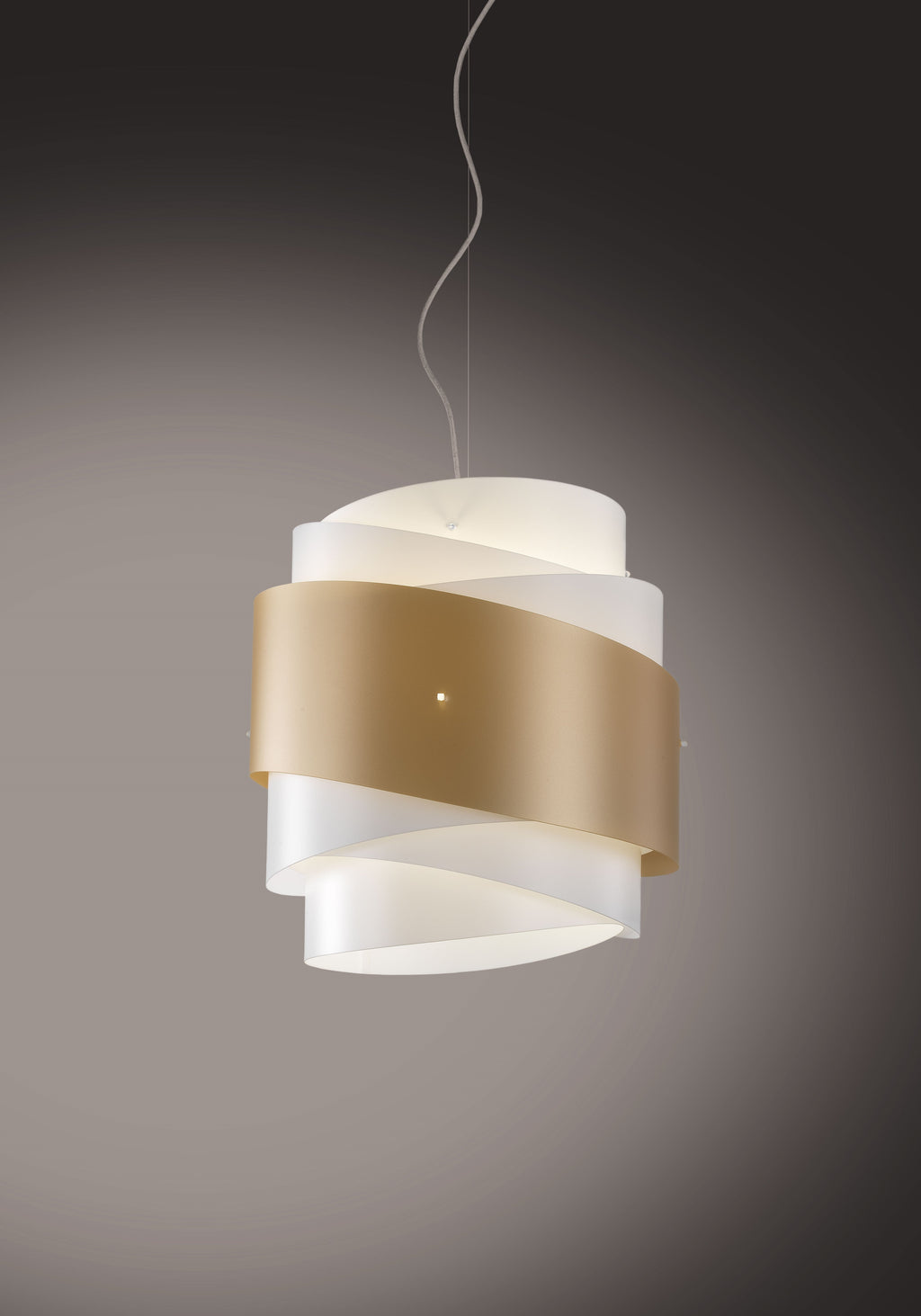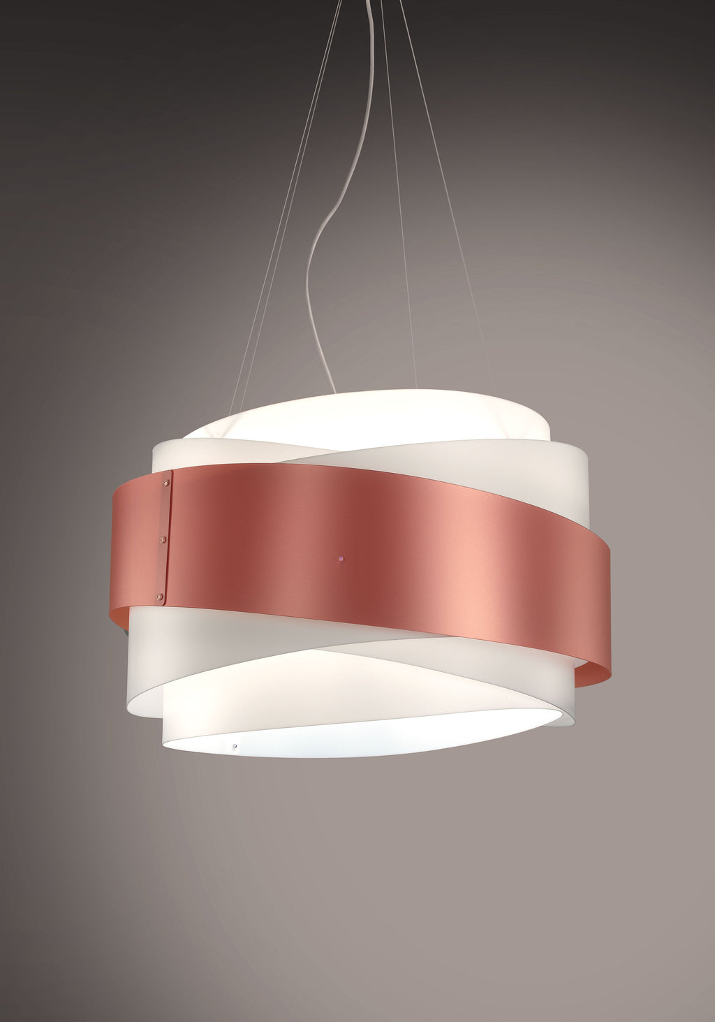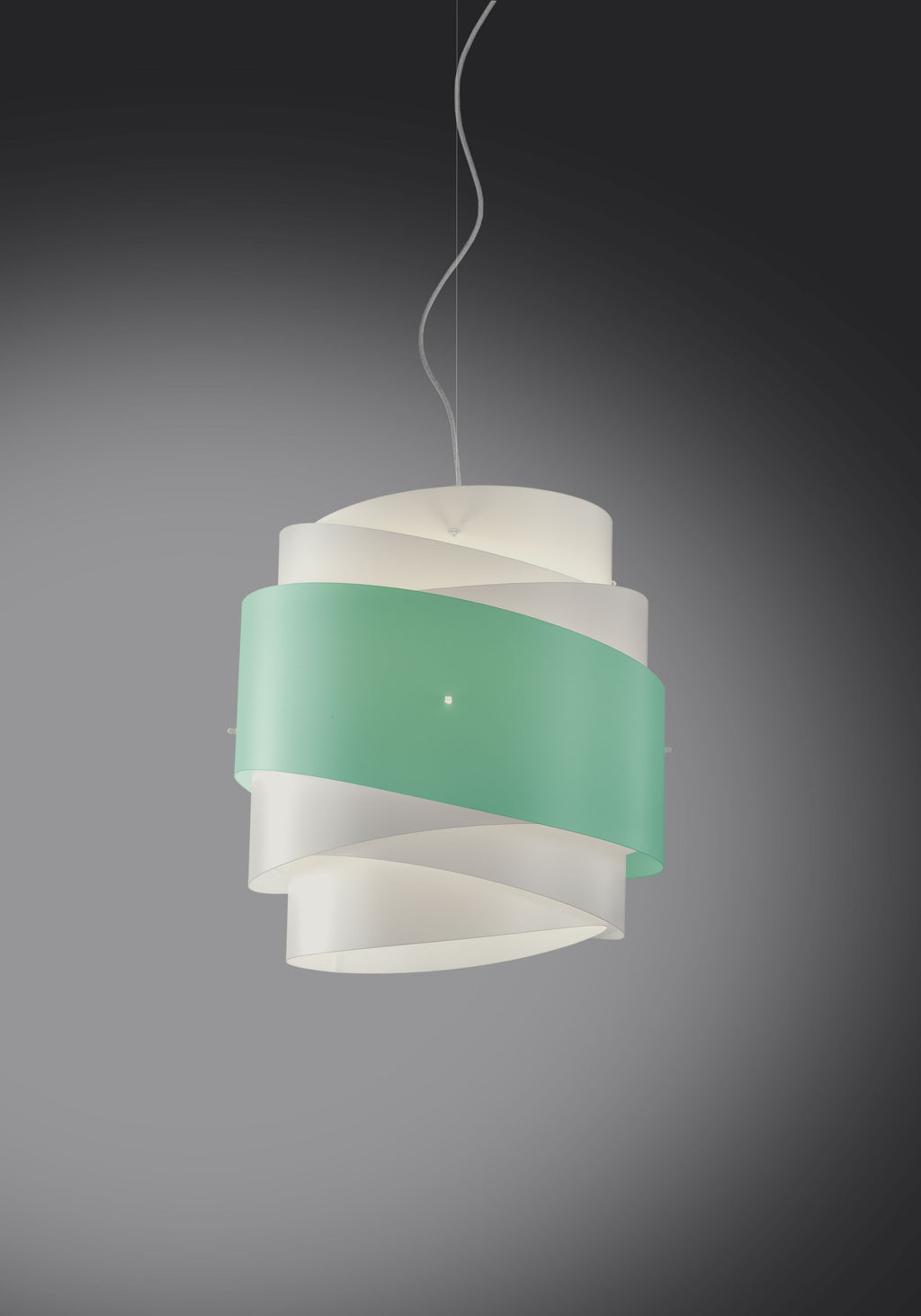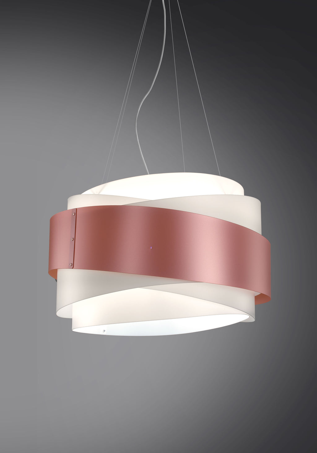 Four surfaces wrapped one on top of the other. Rhythm through the different cutting lines. Polilux™ sheets towards the edges give more momentum and diffusion to the soft and transparent light.