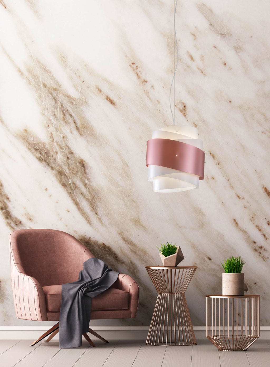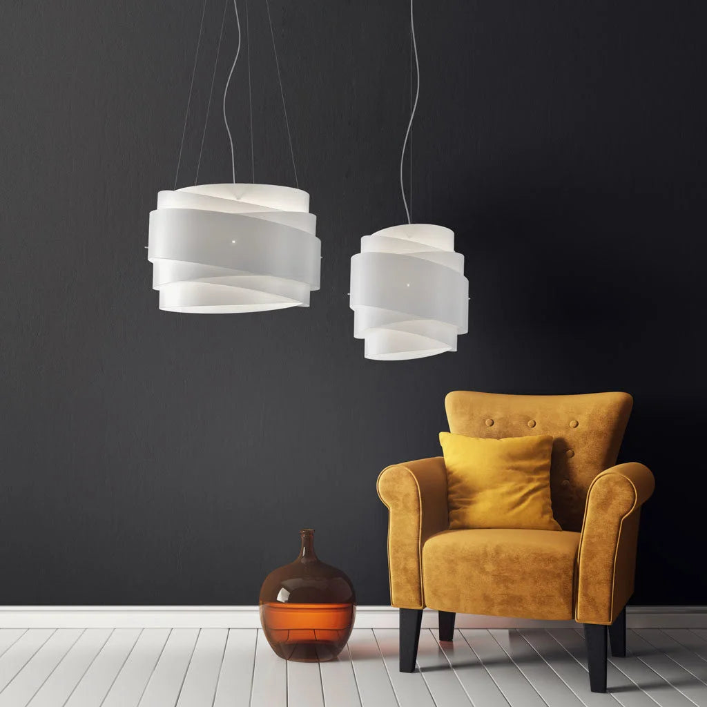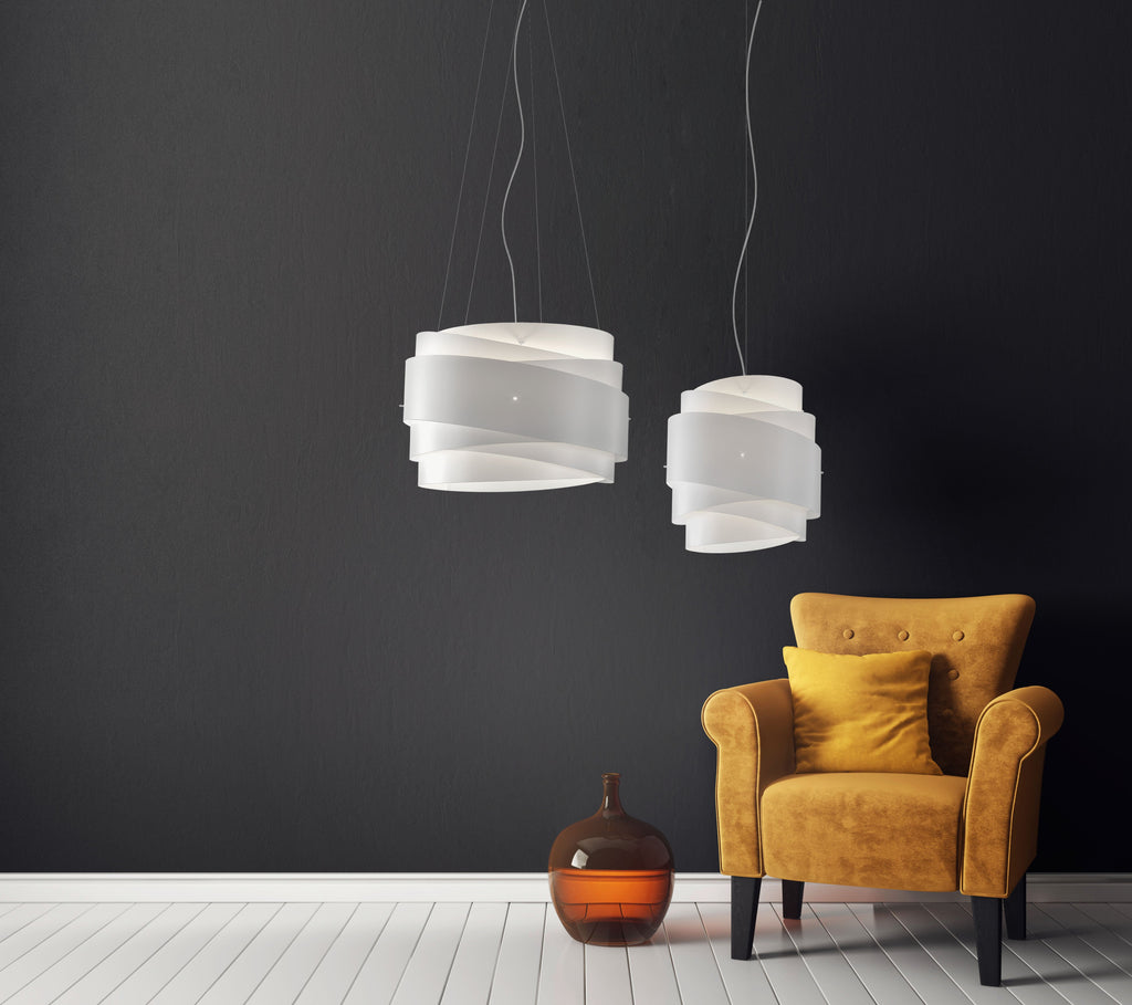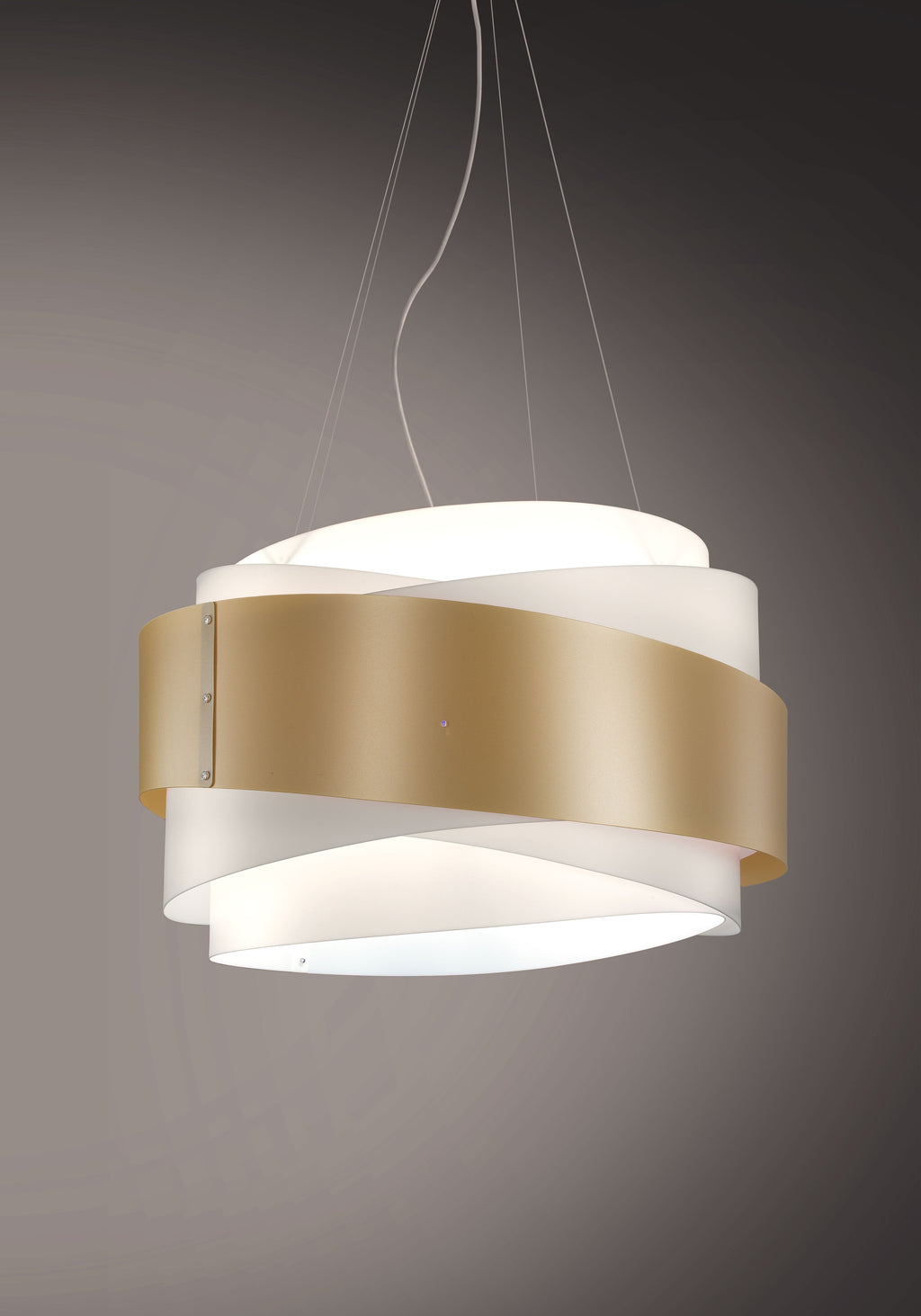 Four surfaces wrapped one on top of the other. Rhythm through the different cutting lines. Polilux™ sheets towards the edges give more momentum and diffusion to the soft and transparent light.
