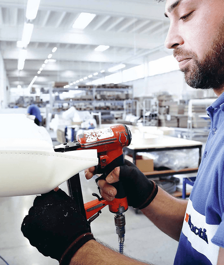 We take care not to let liquids or oily substances fall. We do not sit with sharp objects in our pockets. It should not always be in a place with direct sunlight all day, to keep its colors vibrant for more years. In any case, there is the solution of biological cleaning from a specialized company that will restore your bed to its original condition. Ask us. Our dressed beds, Italian production, all have stain-resistant, waterproof fabrics of high quality, which clean very easily and depending on the quality of the fabric you choose (CAT. A, B, C etc...) your bed will have even greater durability and lifespan. All fabrics are non-toxic and Certified.