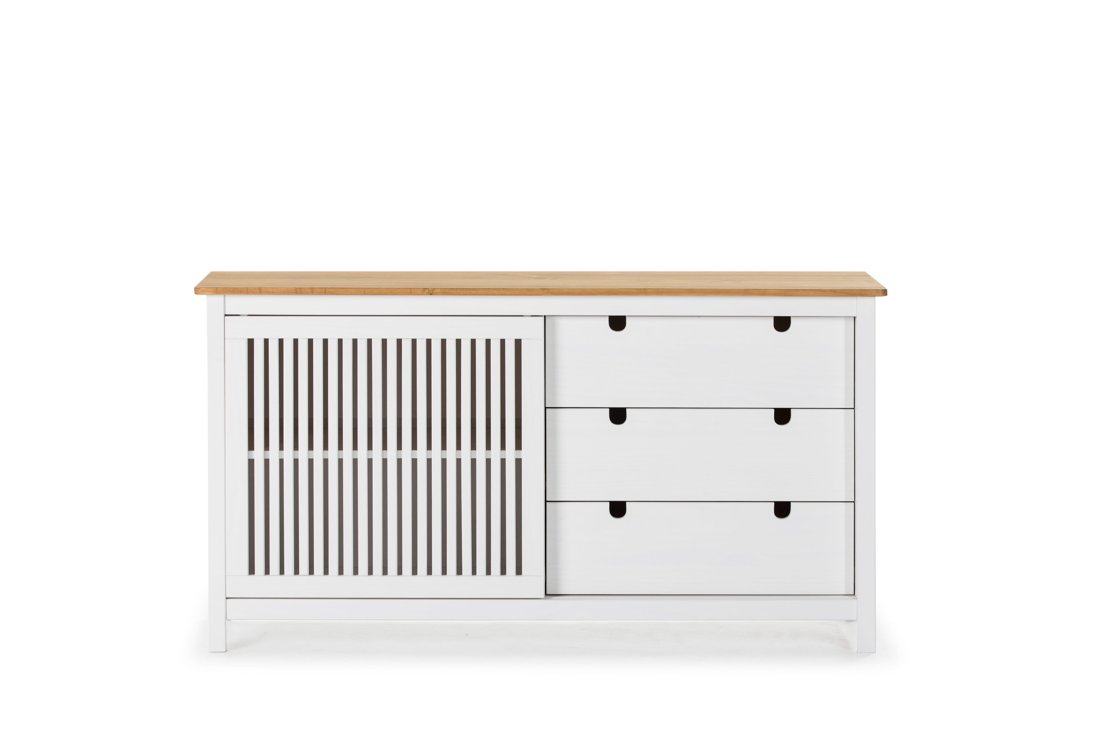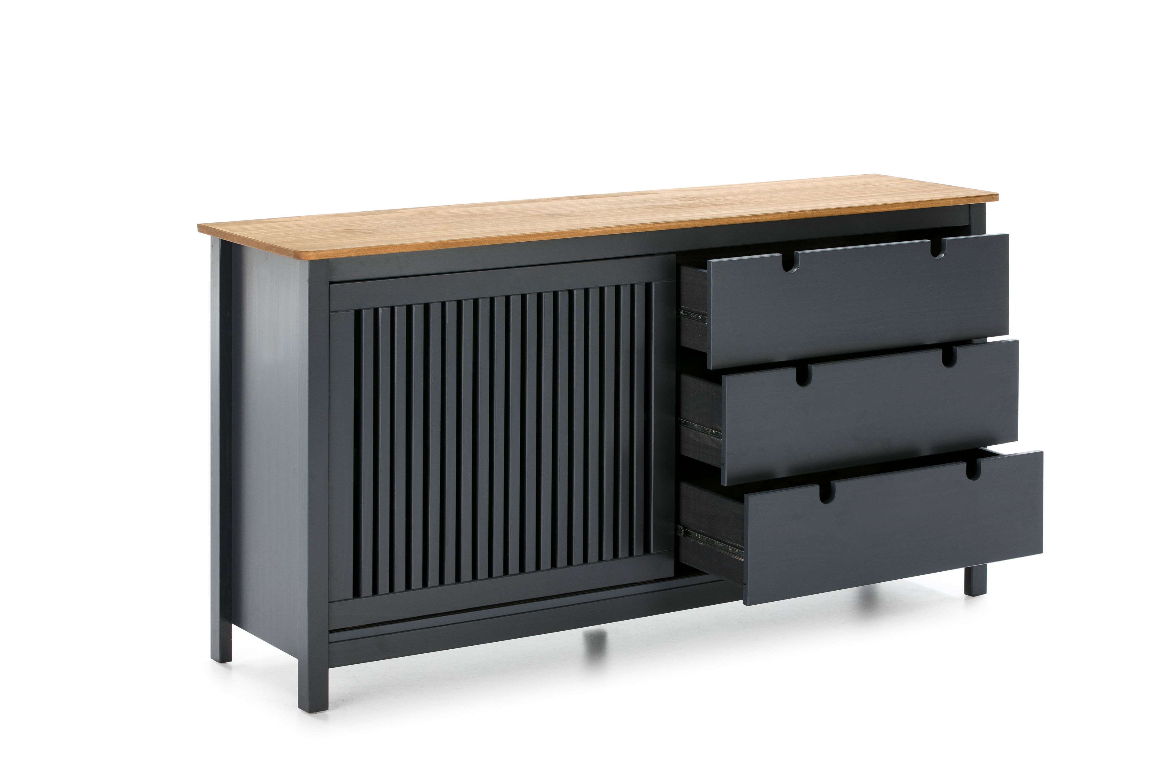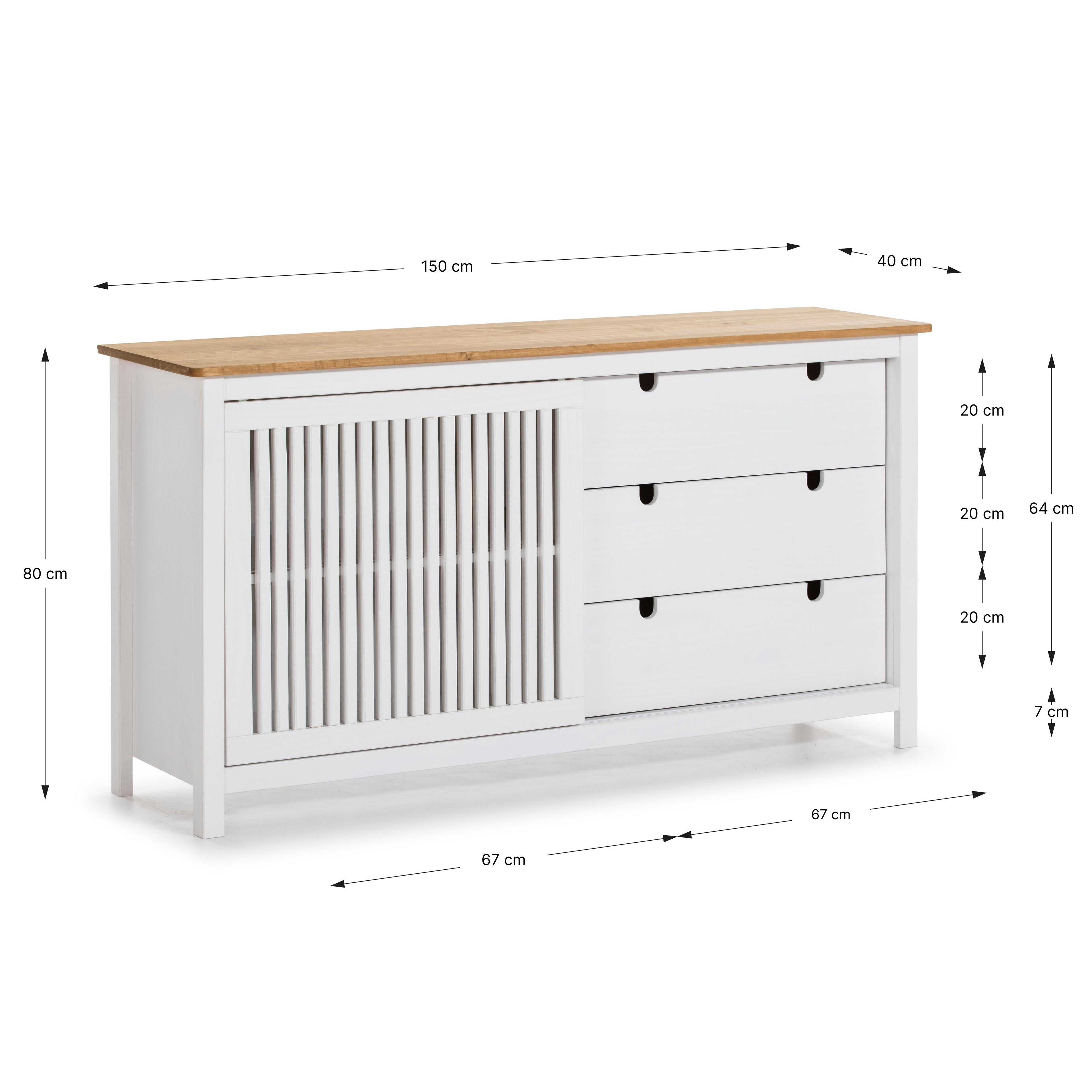 Buffet furniture with sliding door and 3 practical drawers.