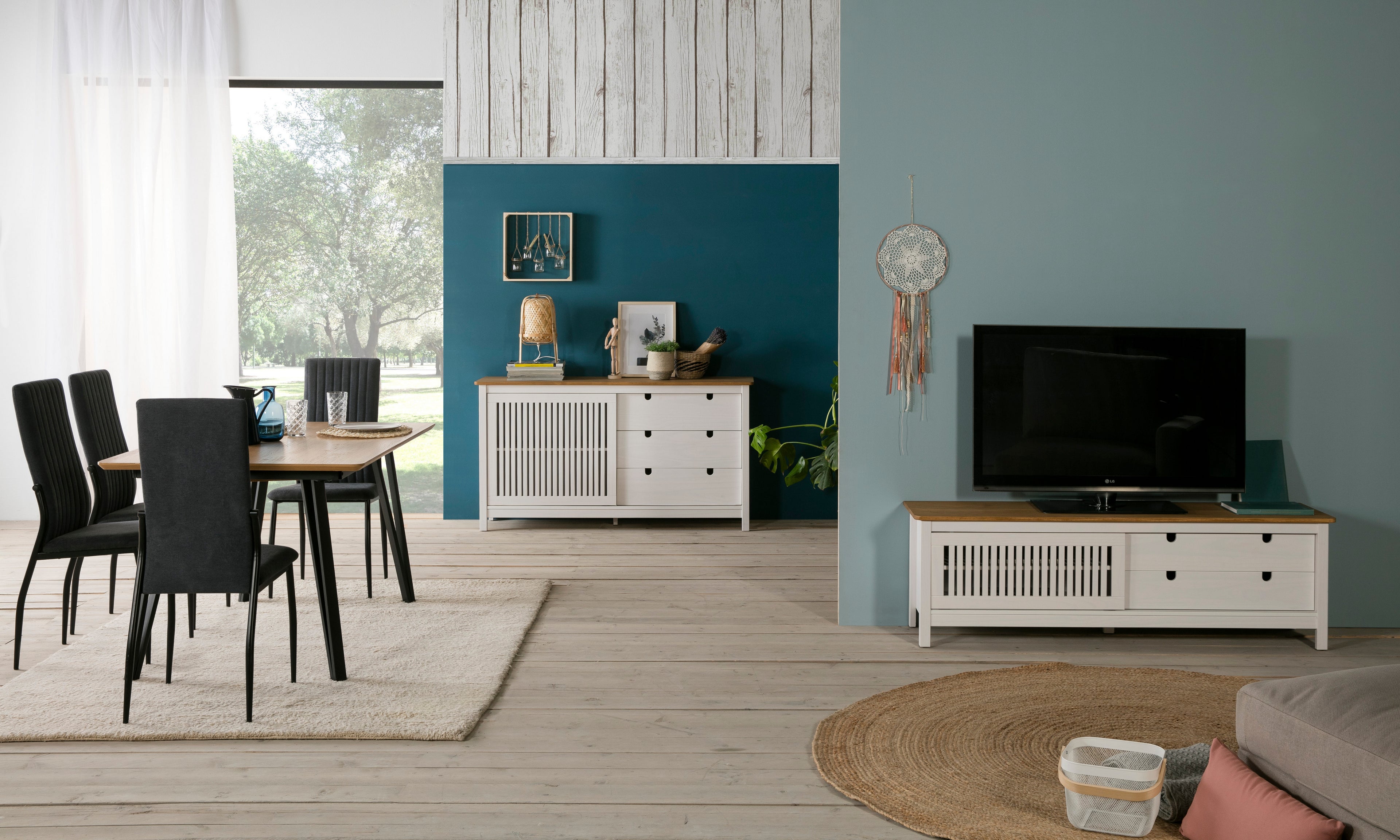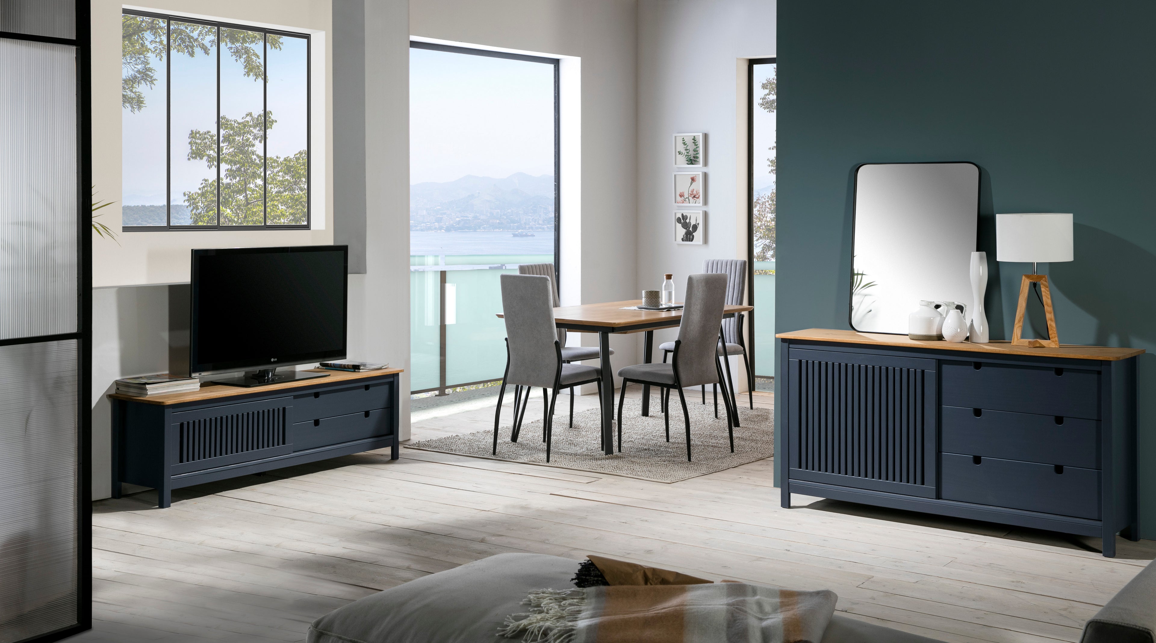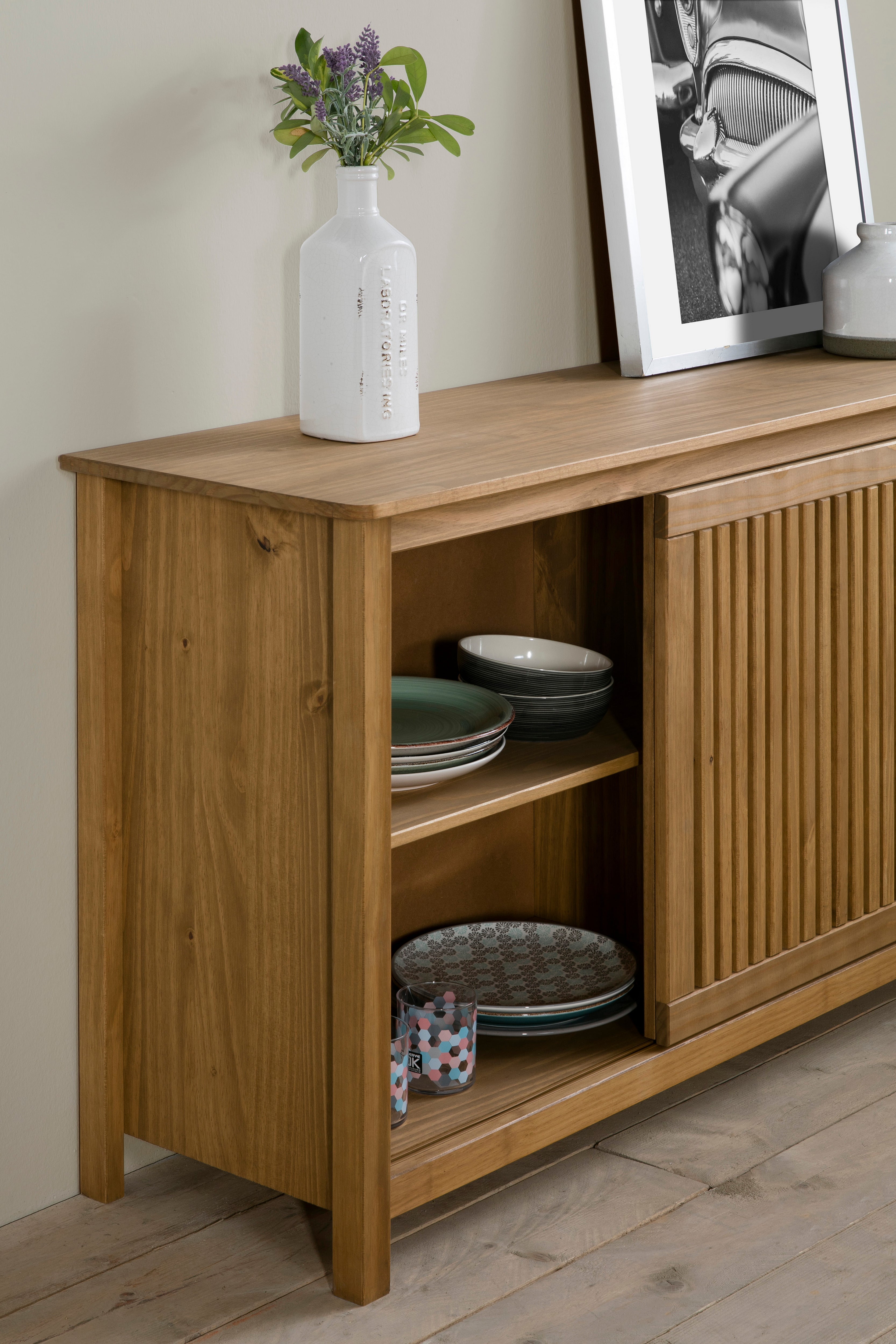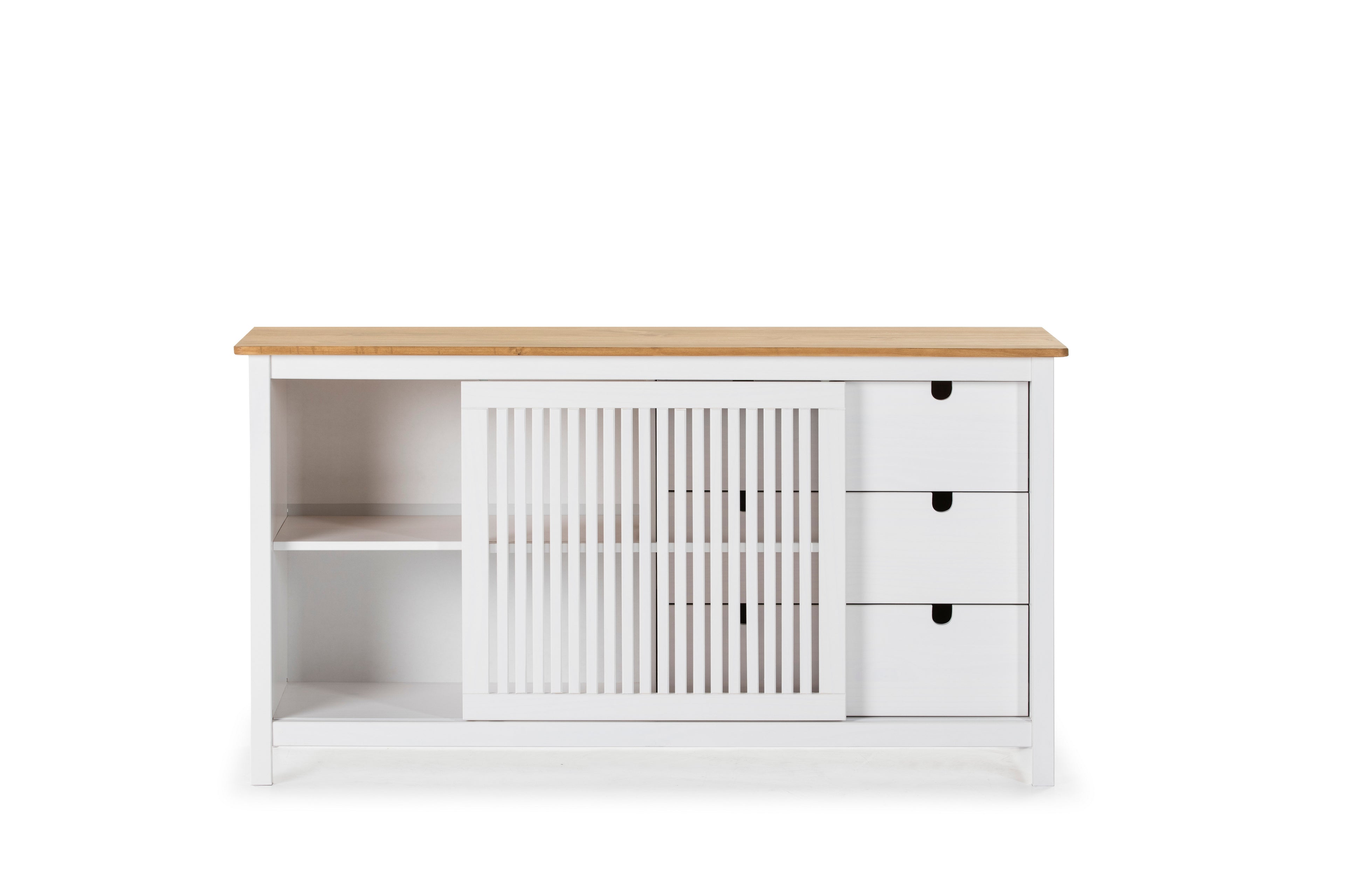 Buffet furniture with sliding door and 3 practical drawers.
