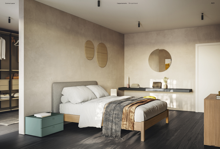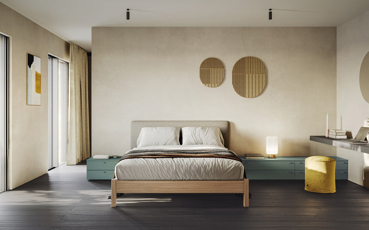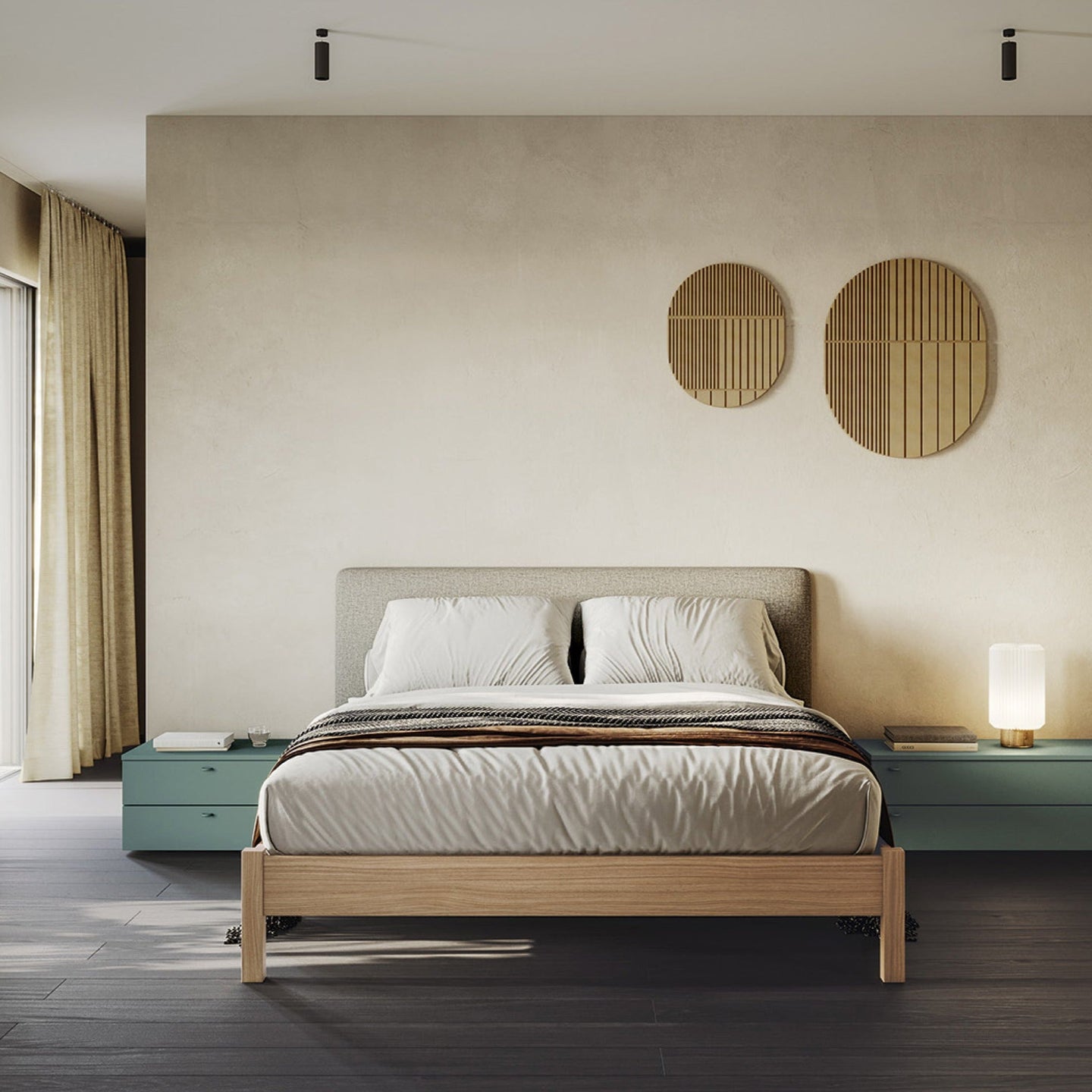 Cozy Bed / Wooden bed with upholstered headboard. It can be incredibly adapted to the bedroom, thanks to the wide variety of available colors & fabrics.