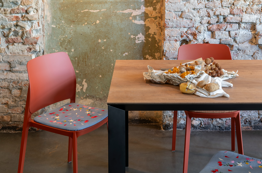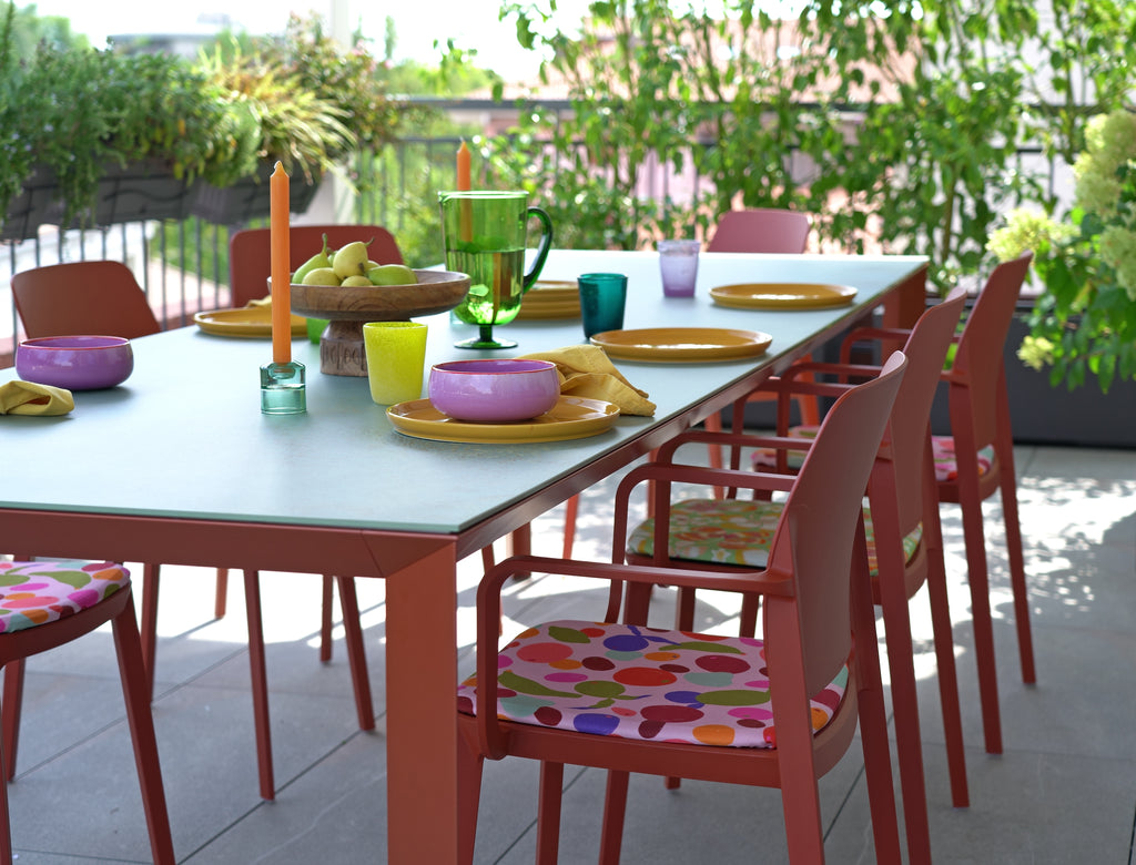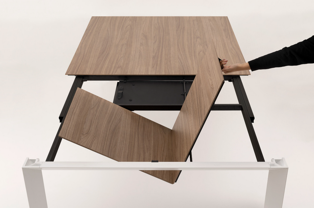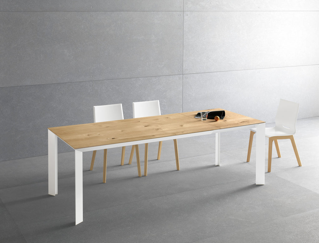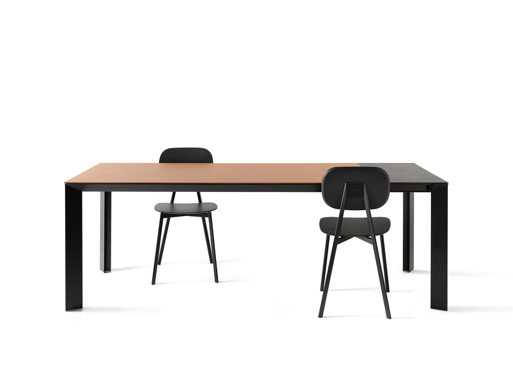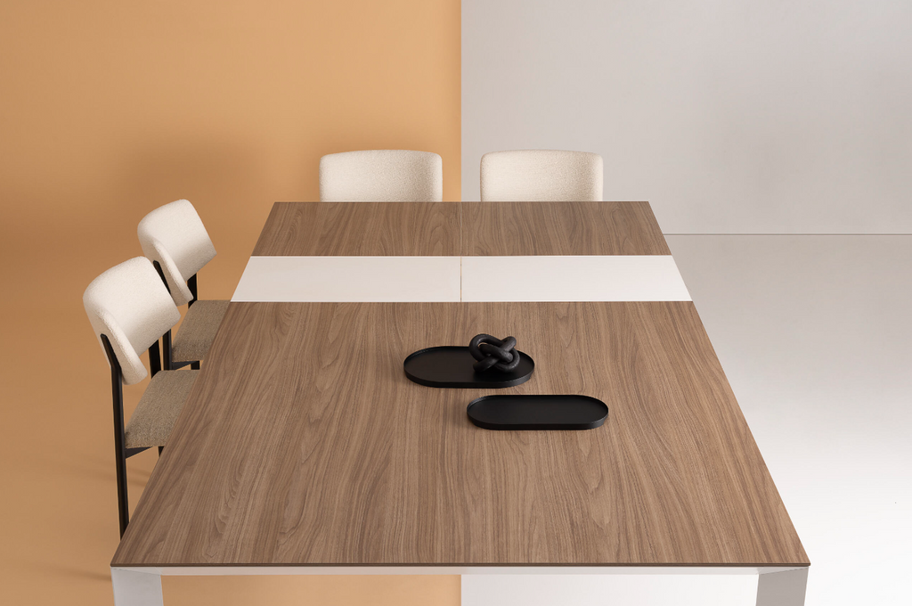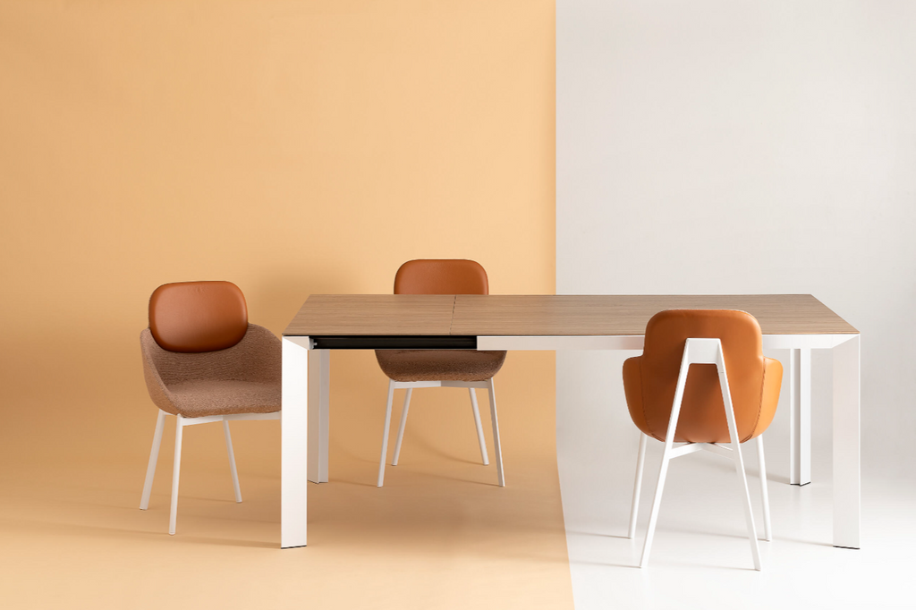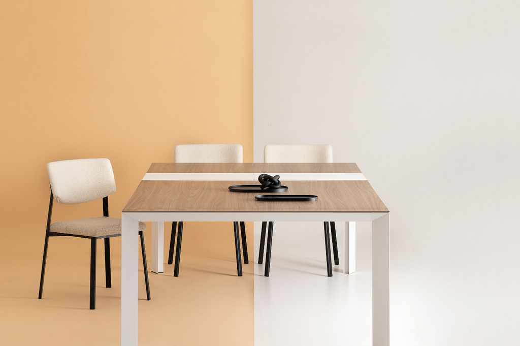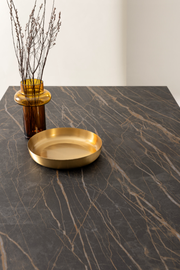 The design of the legs is the true signature of the Diamante table. It is reminiscent of the silhouette of a cut diamond, with a fascinating visual effect: the thin lines capture the light in a unique way, creating plays of shadows that add a touch of dynamism to the entire space.