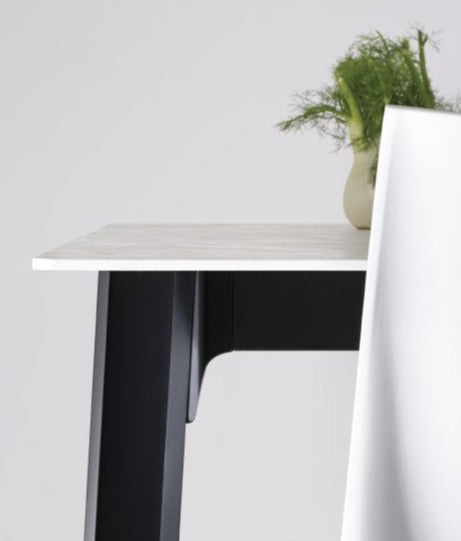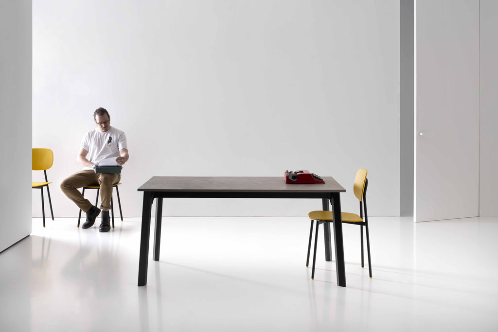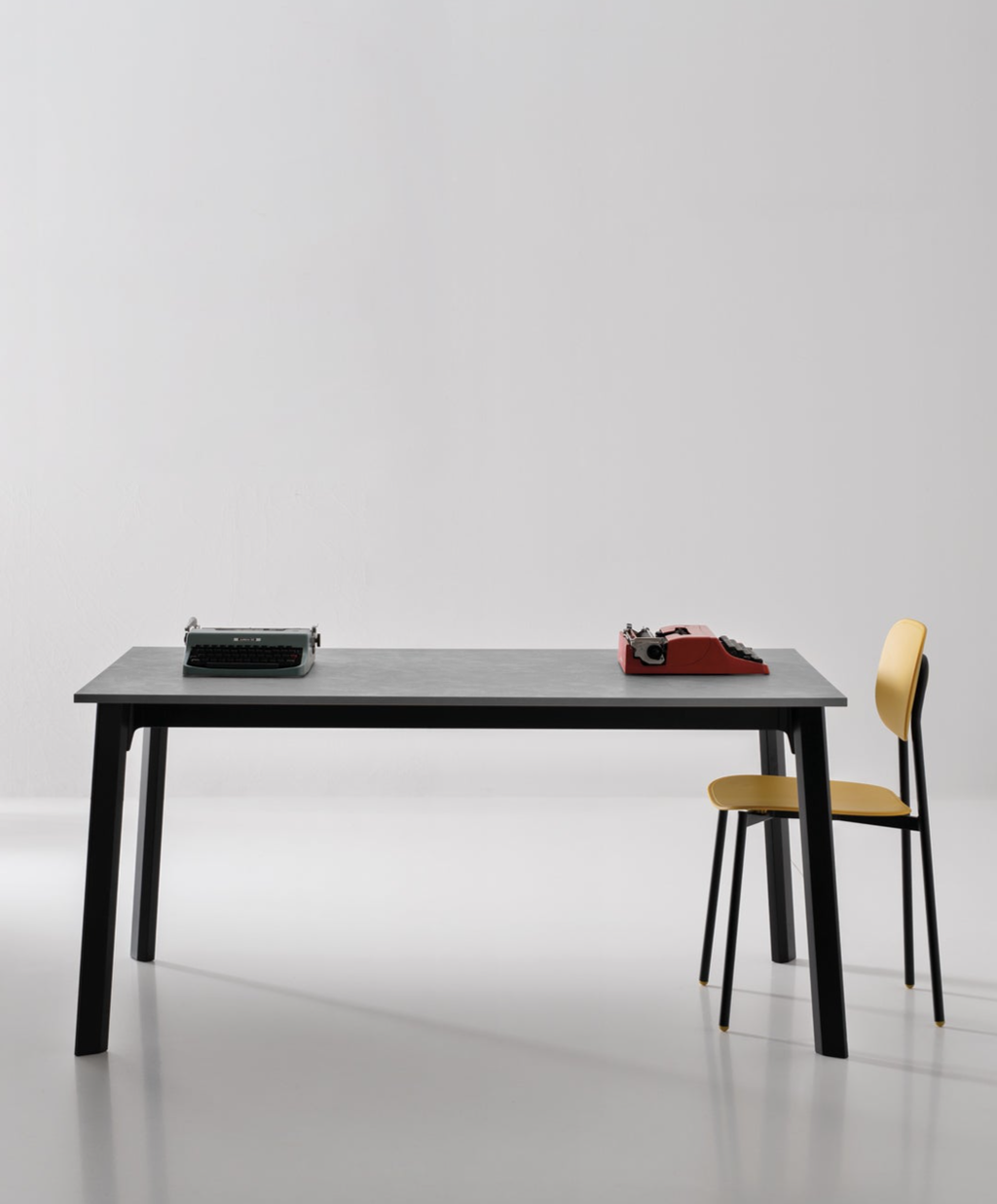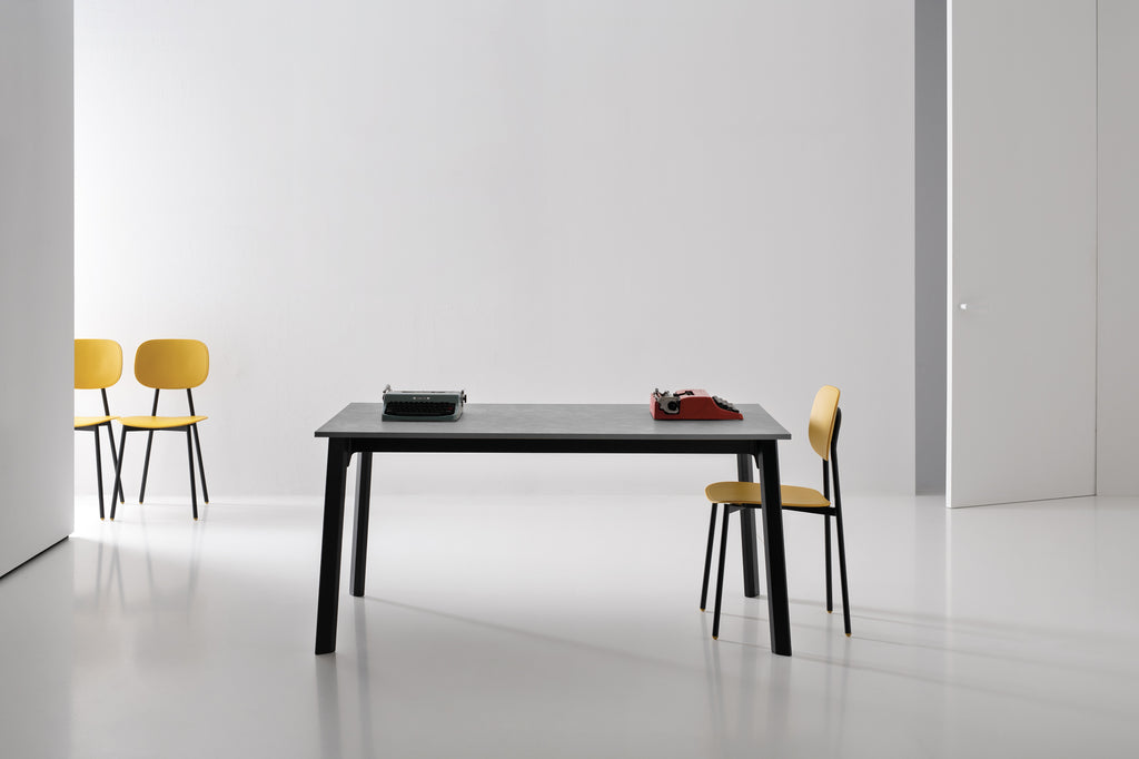 The DROP table offers countless color-material combinations for the surface and base. In various dimensions, to adapt to every need. The polygonal slightly inclined legs are the characteristic of the table.