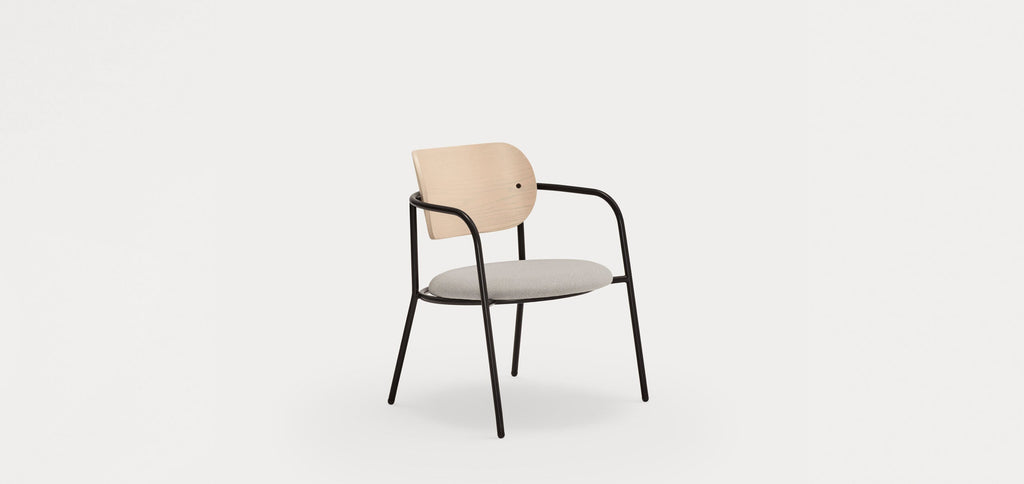 Eclipse is inspired by the phenomenon that gives it its name. This combination of displaced circumferences has been the starting point for this collection, resulting in this misalignment between the upholstered seat and the metallic structure where it rests.