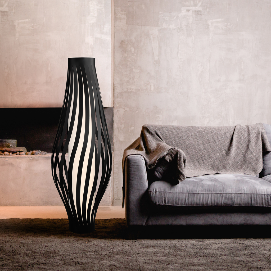 The HELIOS DAMA floor lamp is equipped with two E27 lamp sockets for a maximum 30W LED lamp. Lamps are not included.
