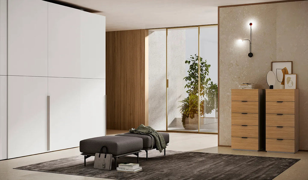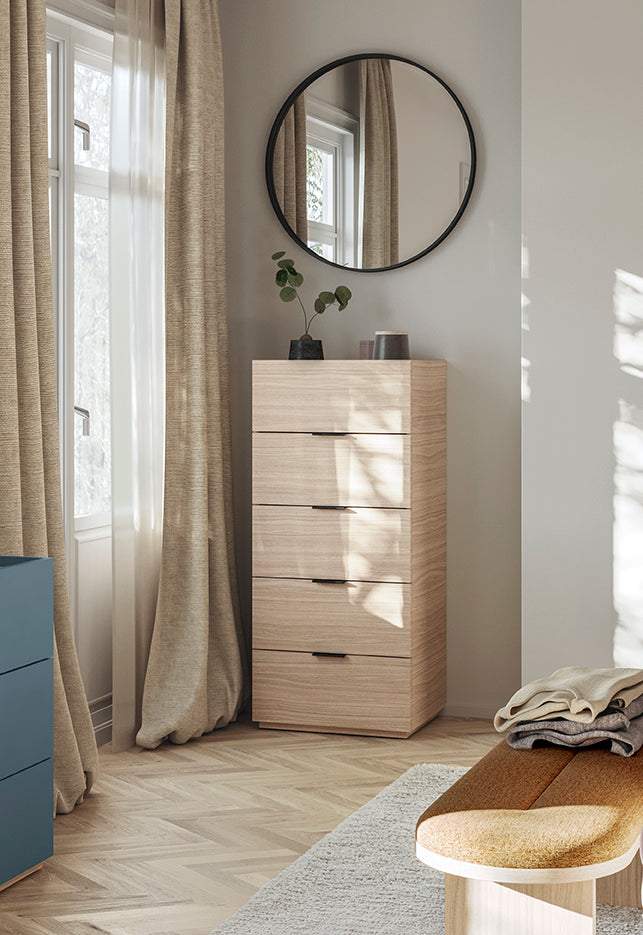 Label is the Tallboy chest of drawers from the Golf collection of the Italian House Colombini Casa, with a simple yet modern design. The front is interrupted only by the 2 metal handles, available in Bianco Opaco, Alluminio and Carbon Grey.