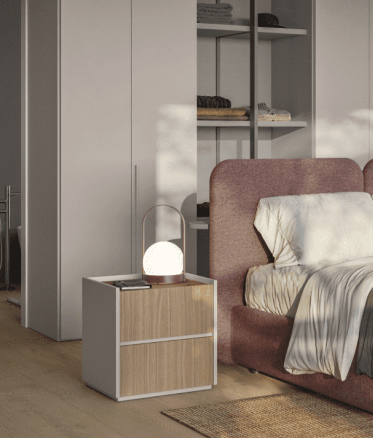 Laguna is the bedside table from the Golf collection of the Italian House Colombini Casa, with a simple yet modern design. The detail between the drawers and the slat on the top make this bedside table special.