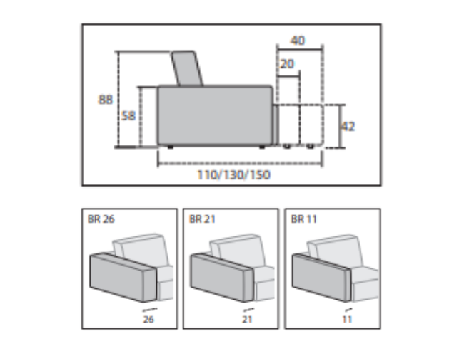 MONO sofa is produced with 3 different arms. Choose the one that suits your taste and space.