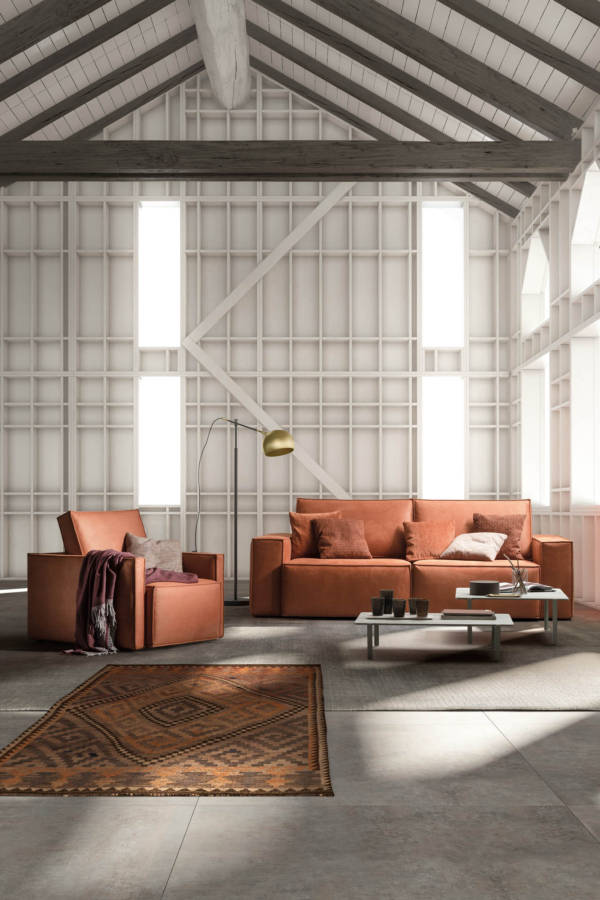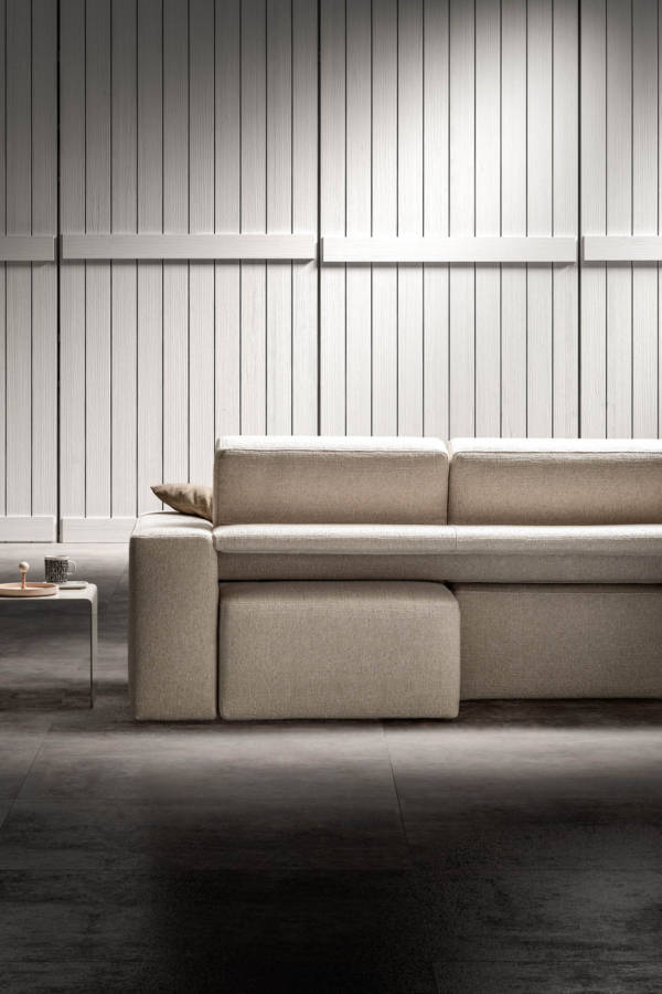 Mono is a sofa characterized by strict shapes that leave room for creativity through the adaptation of fabrics. Sofa of the FLOW series, with a sliding seat mechanism of the seats with variable depth that offers maximum comfort and flexibility in use.
