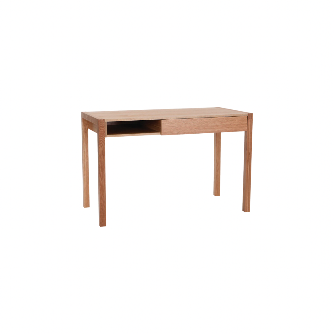 Desk body made of particleboard with oak veneer. Leg frame made of solid oak. Drawer made of MFC oak.