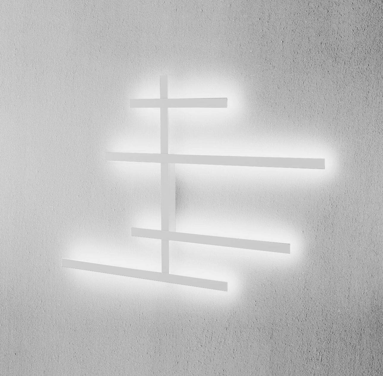 Luminaire with aluminum structure and methacrylate diffuser. Matt white finish. LED light source with adjustable ballast (Push). Indirect lighting.