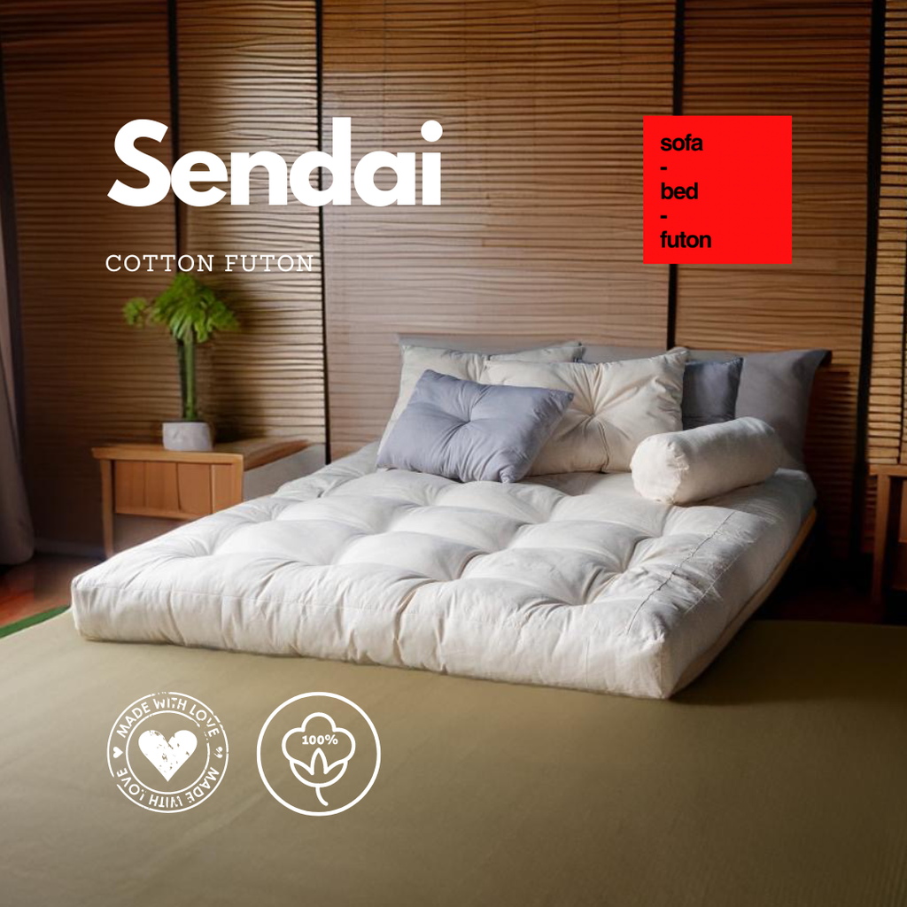 The Sendai Cotton Futon belongs to the Comfort collection, with a side height of 18 cm and around 22 cm in the center. It is a double-sided , medium-firm mattress.