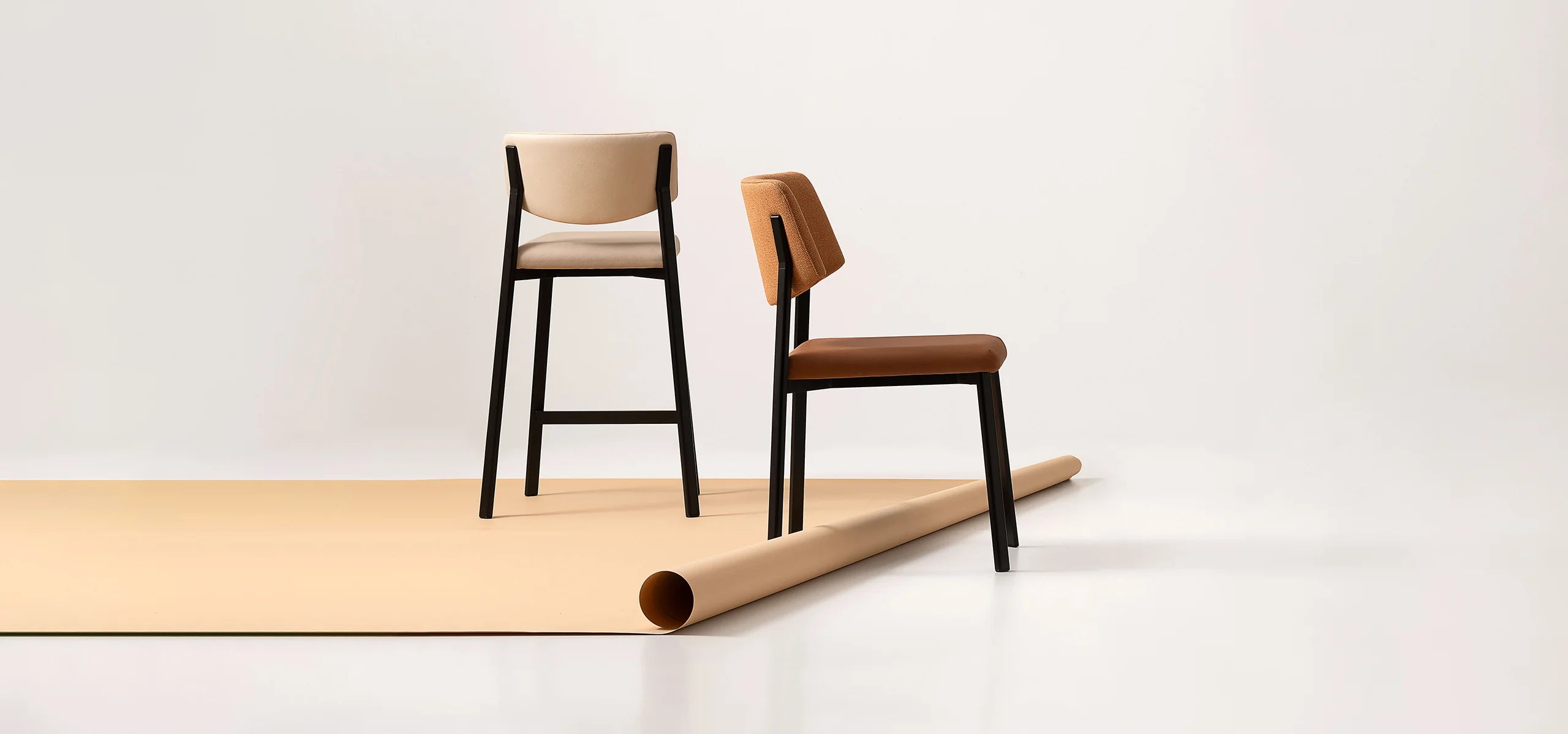 The Beba SOFT stool is a warm and comfortable stool, as it has a padded back and seat. With a linear design alternating with more rounded curves, this chair becomes a furnishing accessory for everyday life.