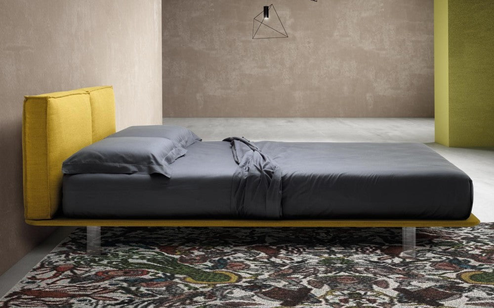 The STYLISH bed by Samoa is an extremely modern and minimalist bed, with strict lines, characterized by thick rectangular pillows that make up the headboard and by the possibility of combining it with high and transparent legs that give it a magical floating effect.