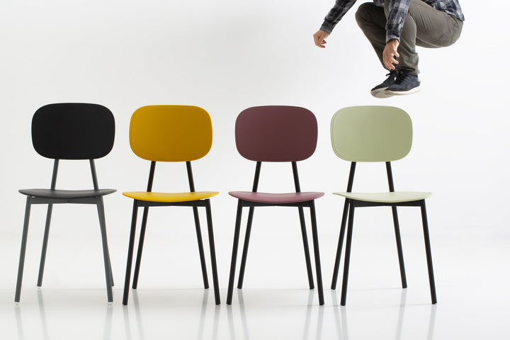 Bar stool with a dynamic and original style, decorates with lightness and irony both your home and public spaces such as bars, cafes and restaurants. The seat and back are made of reinforced polypropylene with fiberglass fibers.