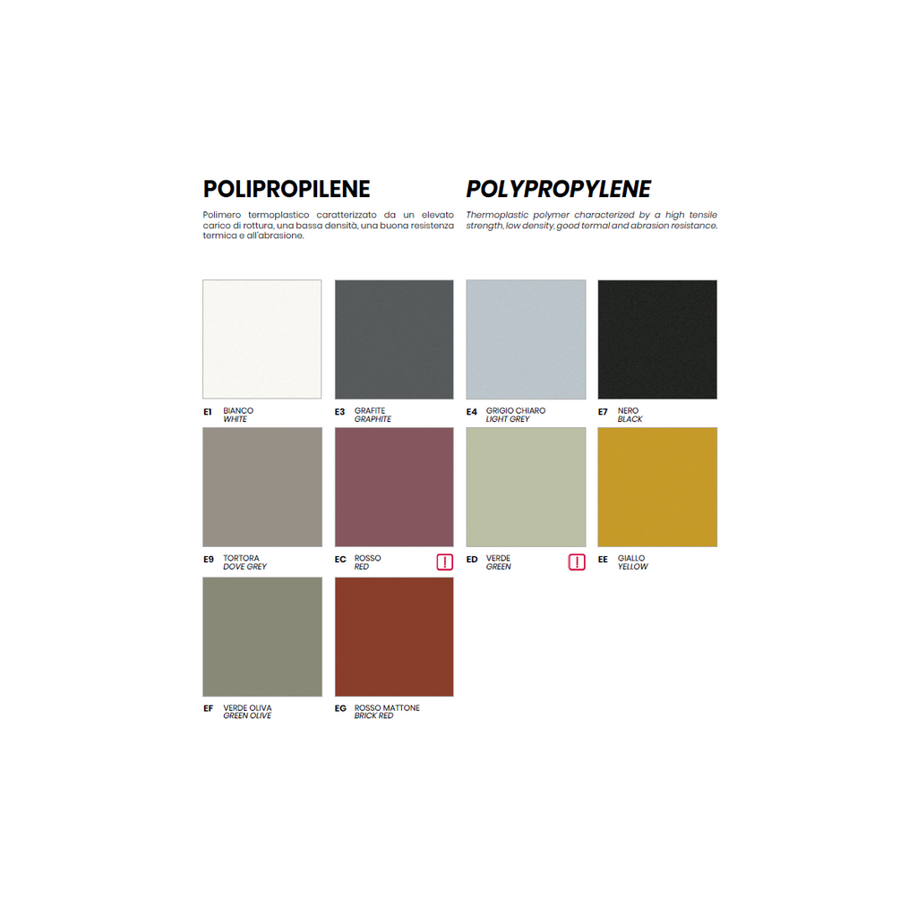 Chair with a dynamic and original style, decorates with lightness and irony both your home and public spaces such as bars, cafes and restaurants. The seat and back are made of fiberglass reinforced polypropylene.
