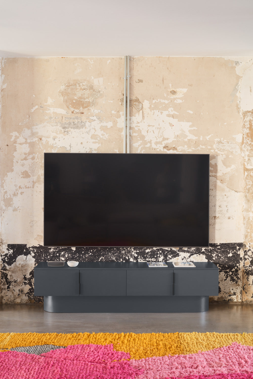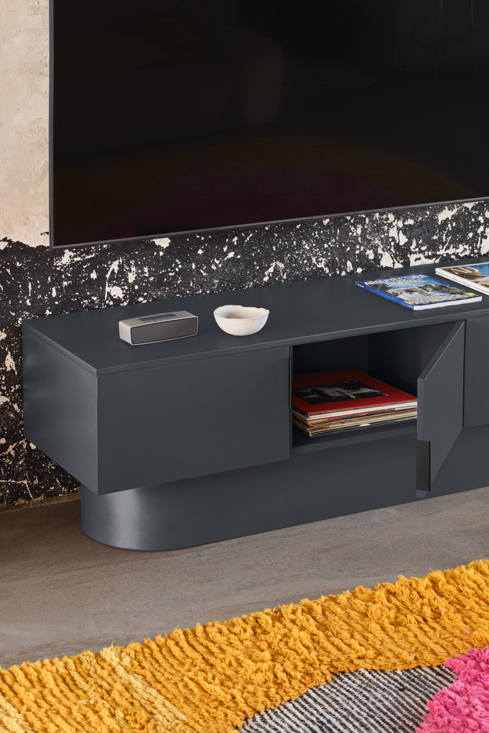 TV stand. With its almost monolithic appearance, Totem invites us to contemplate it as if it were a sculptural work, transcending the boundaries between function and form.