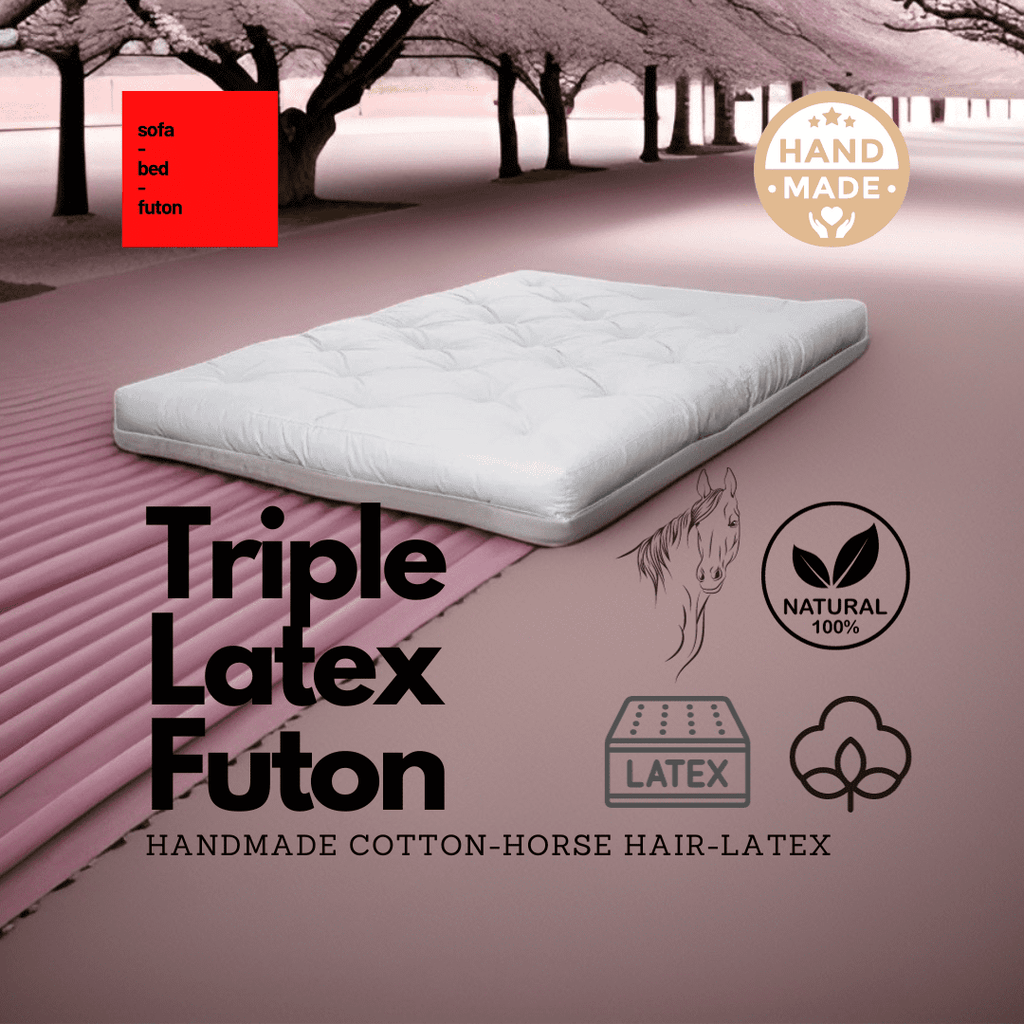 Futon Mattress. The Triple latex futon is an 18 cm thick cotton and wool mattress with a latex foam core and horsehair.