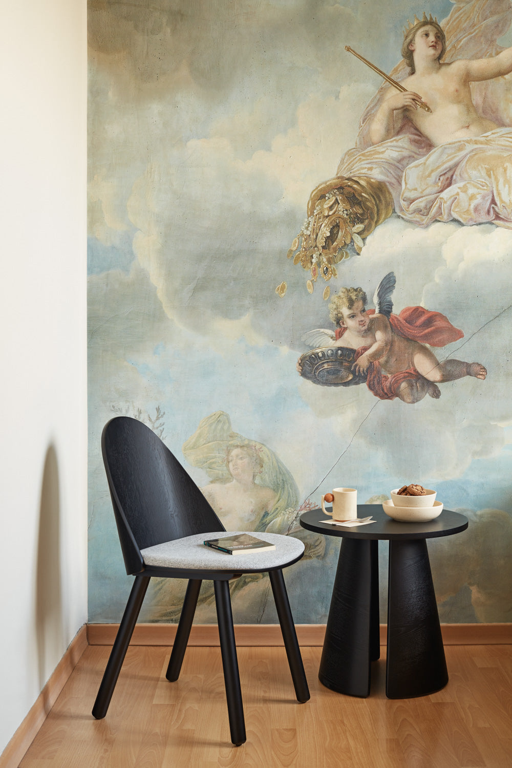 Entirely made in wood, Uma takes from the traditional woodworking craft. The cushion is fully upholstered.