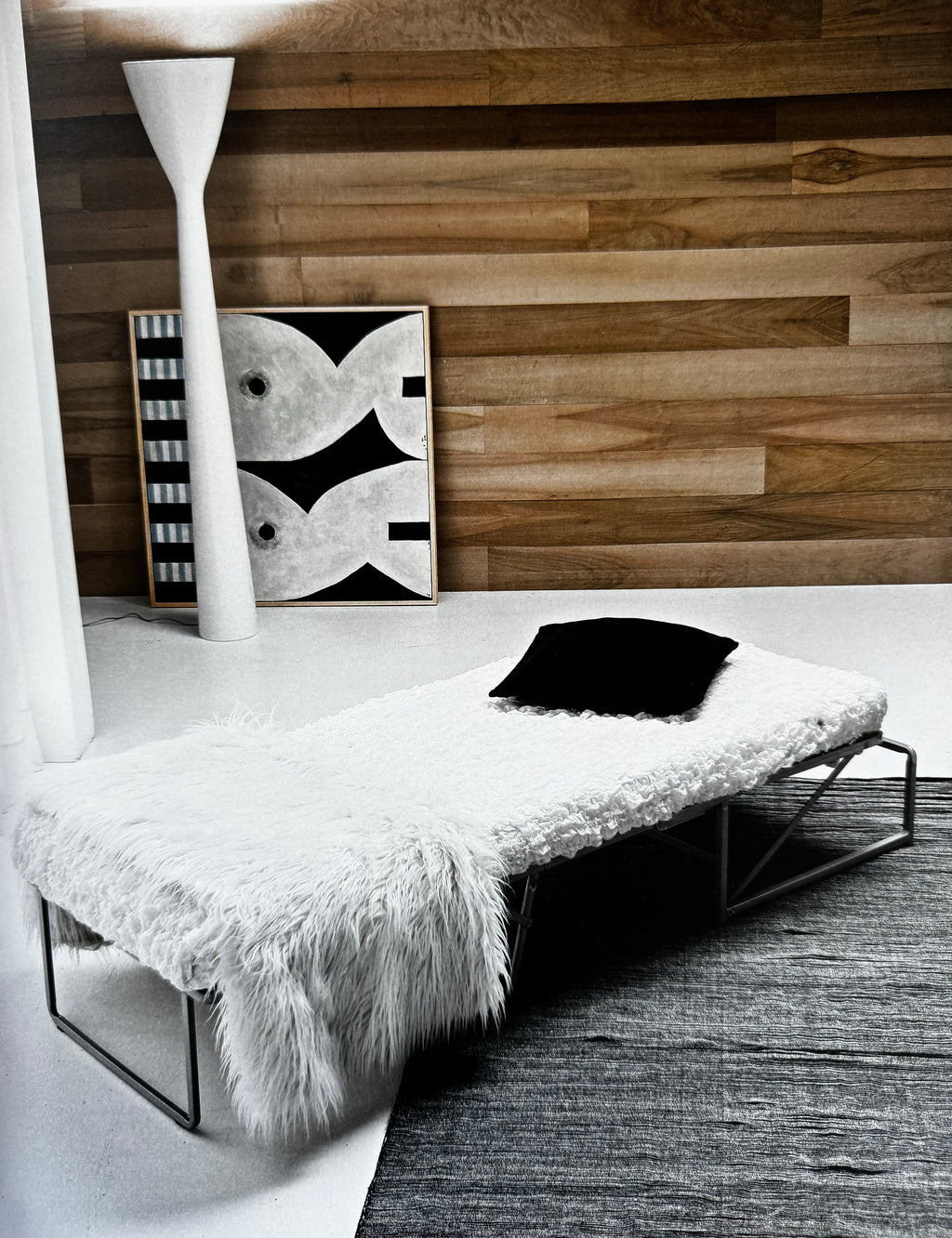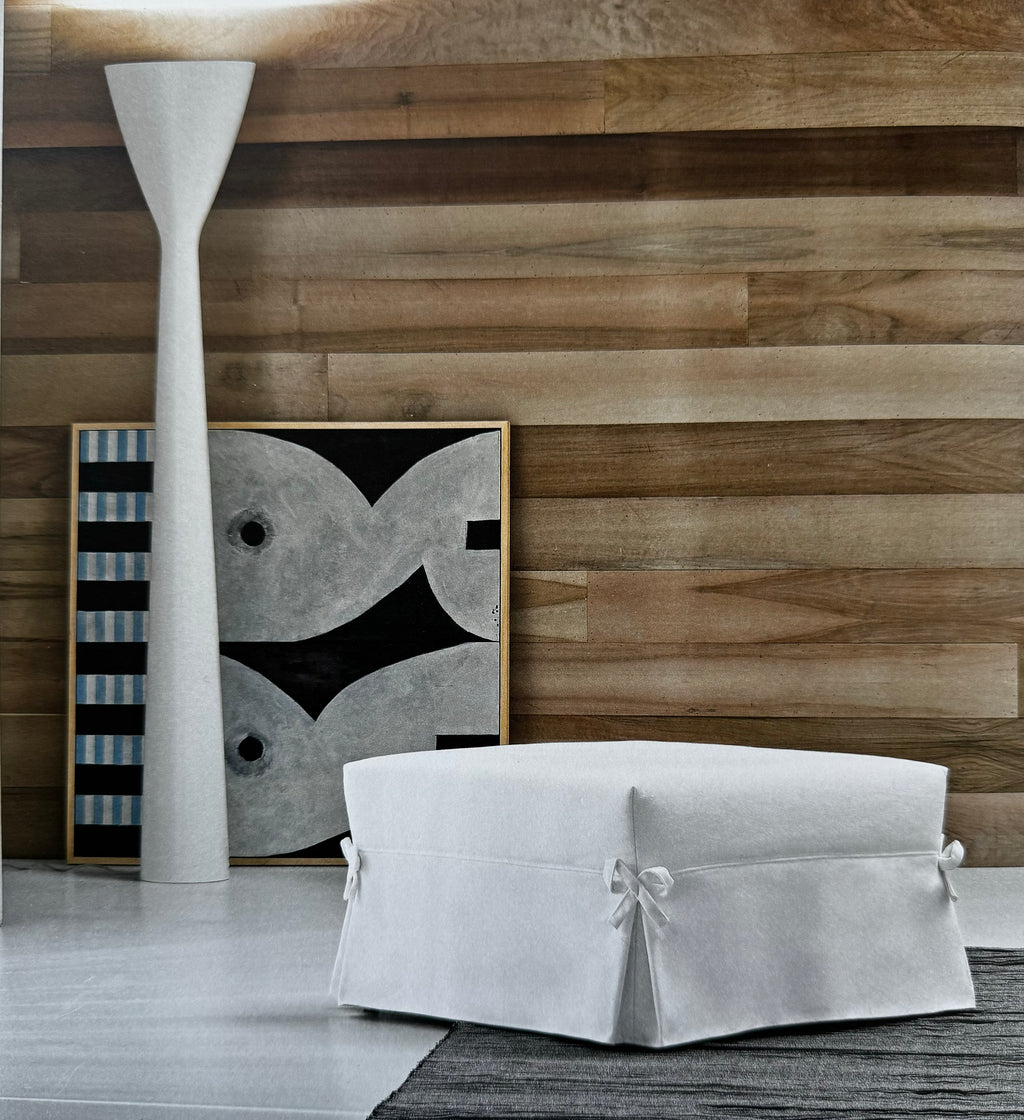 The Vanity stool easily converts into a comfortable bed. Made in Italy. Available in a variety of fabrics.
