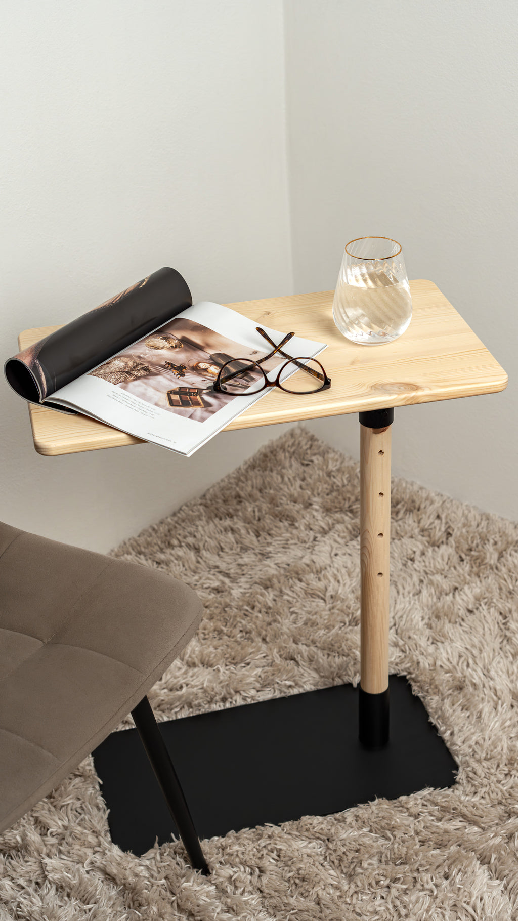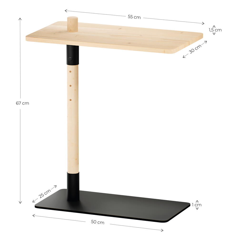 Έχει διαστάσεις 55 x 30 cm και προσφέρει πολλές χρήσεις – ιδανικό ως κομοδίνο στην κρεβατοκάμαρα, βολικό δίπλα στον καναπέ, ιδανικό στη γωνία ανάγνωσης ή ως θέση εργασίας δίπλα στην πολυθρόνα. Με 5 ρυθμιζόμενα ύψη, το Adjust Side Table προσαρμόζεται εύκολα στις ανάγκες σας και ταιριάζει σε μια ποικιλία χωρικών πλαισίων. Το βοηθητικό τραπέζι είναι κατασκευασμένο από ατσάλι με πιστοποίηση FSC® πεύκου και βαμμένο με πούδρα. Αυτό το βοηθητικό τραπέζι συνδυάζει την πολυλειτουργικότητα με το στυλ.
