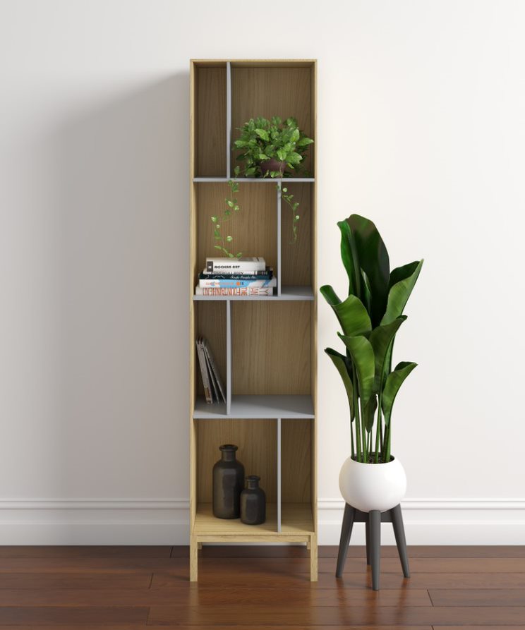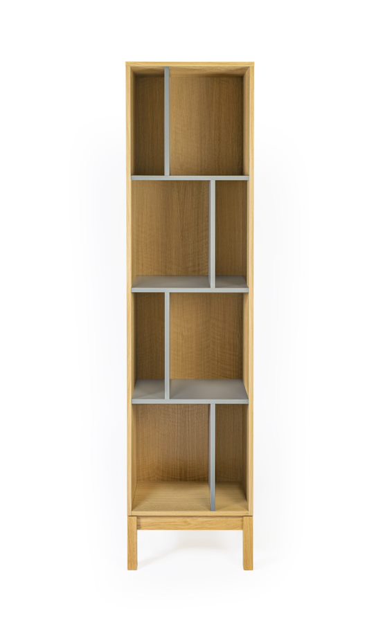 Βιβλιοθήκη-στήλη σε φυσικό και γκρί χρώμα.