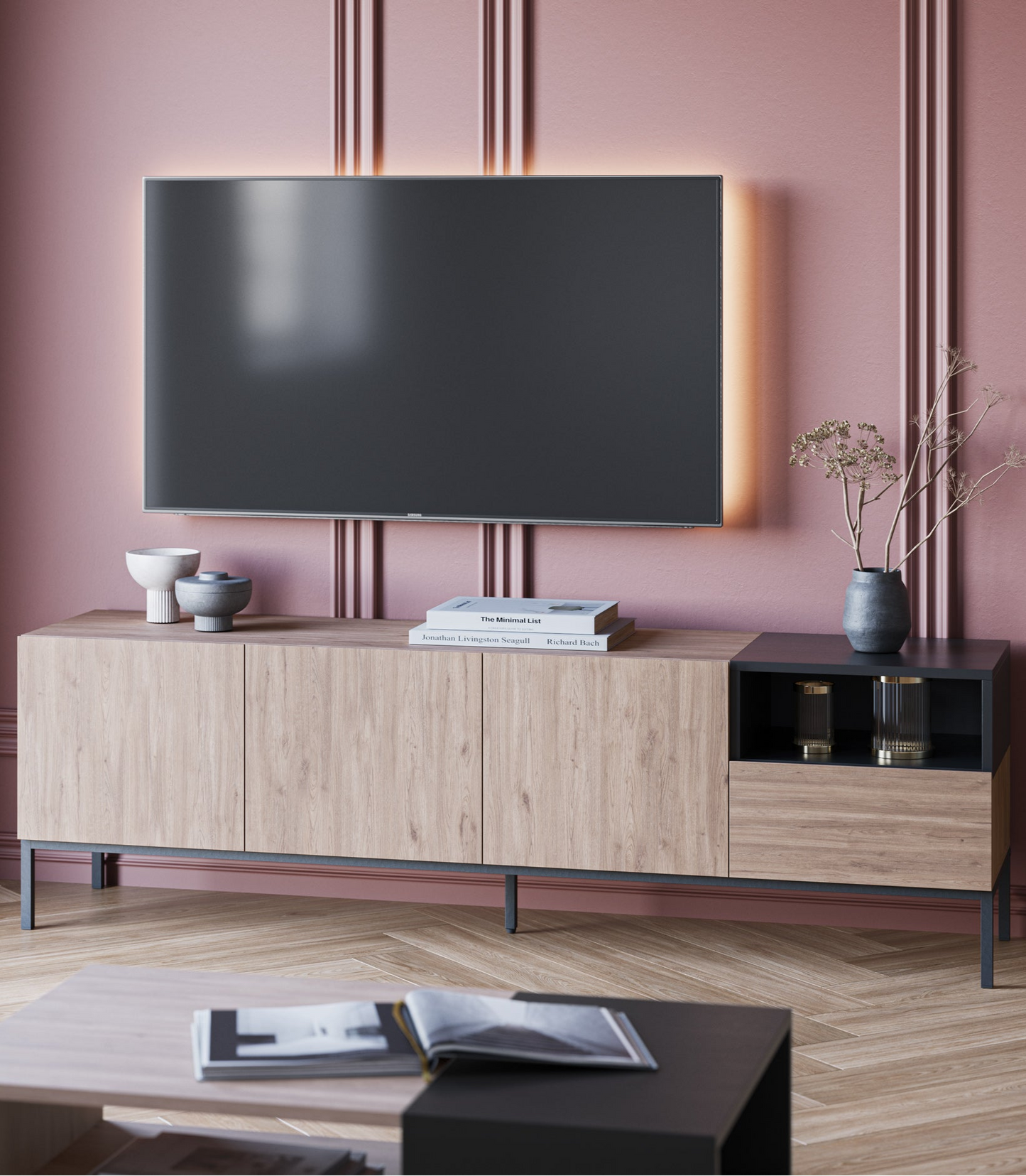 Το έπιπλο τηλεόρασης Cailin είναι λιτό και μοντέρνο, θα ταιριάξει σίγουρα στο σαλόνι σας. Διαθέσιμο σε δύο διαφορετικούς συνδυασμούς χρωμάτων.