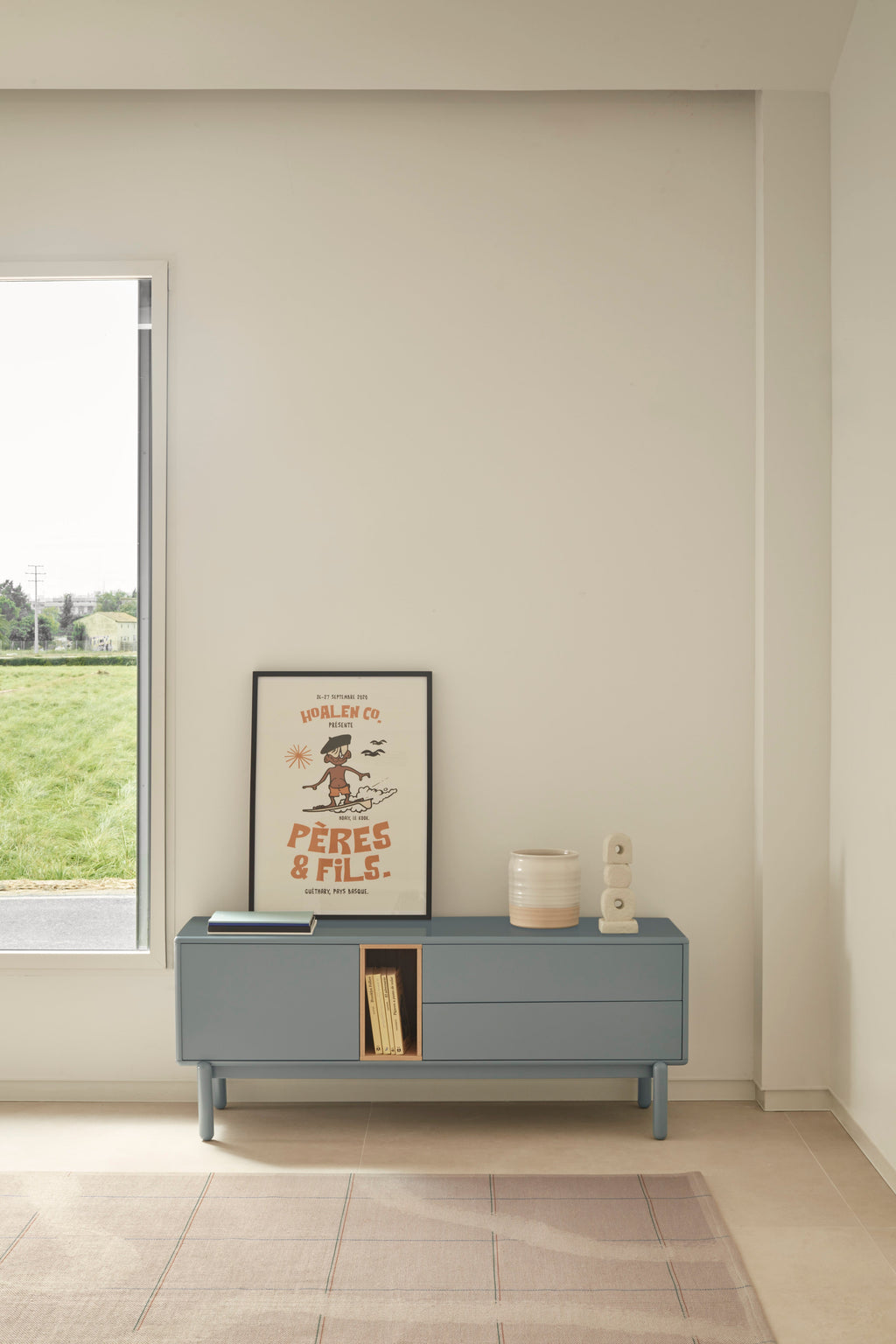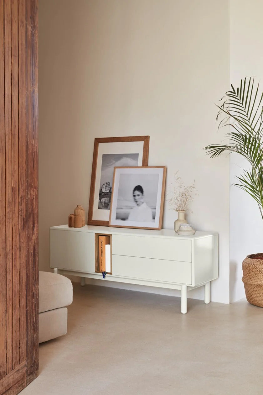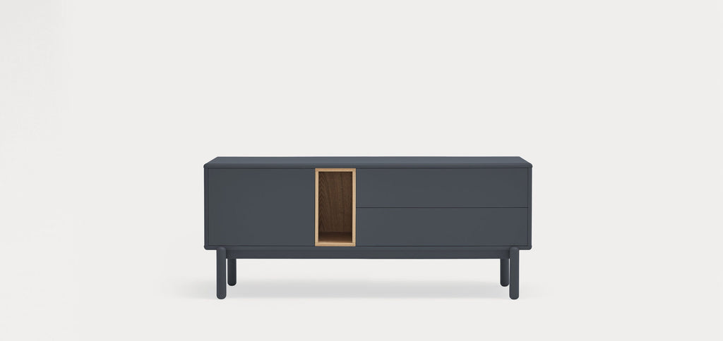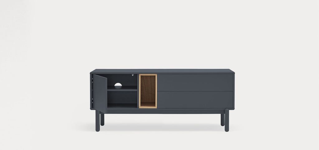 Έπιπλο TV. Οι στρογγυλεμένες άκρες σε όλη την περίμετρο των επίπλων δίνουν στη συλλογή Corvo μία απαλή και ογκώδη εμφάνιση.