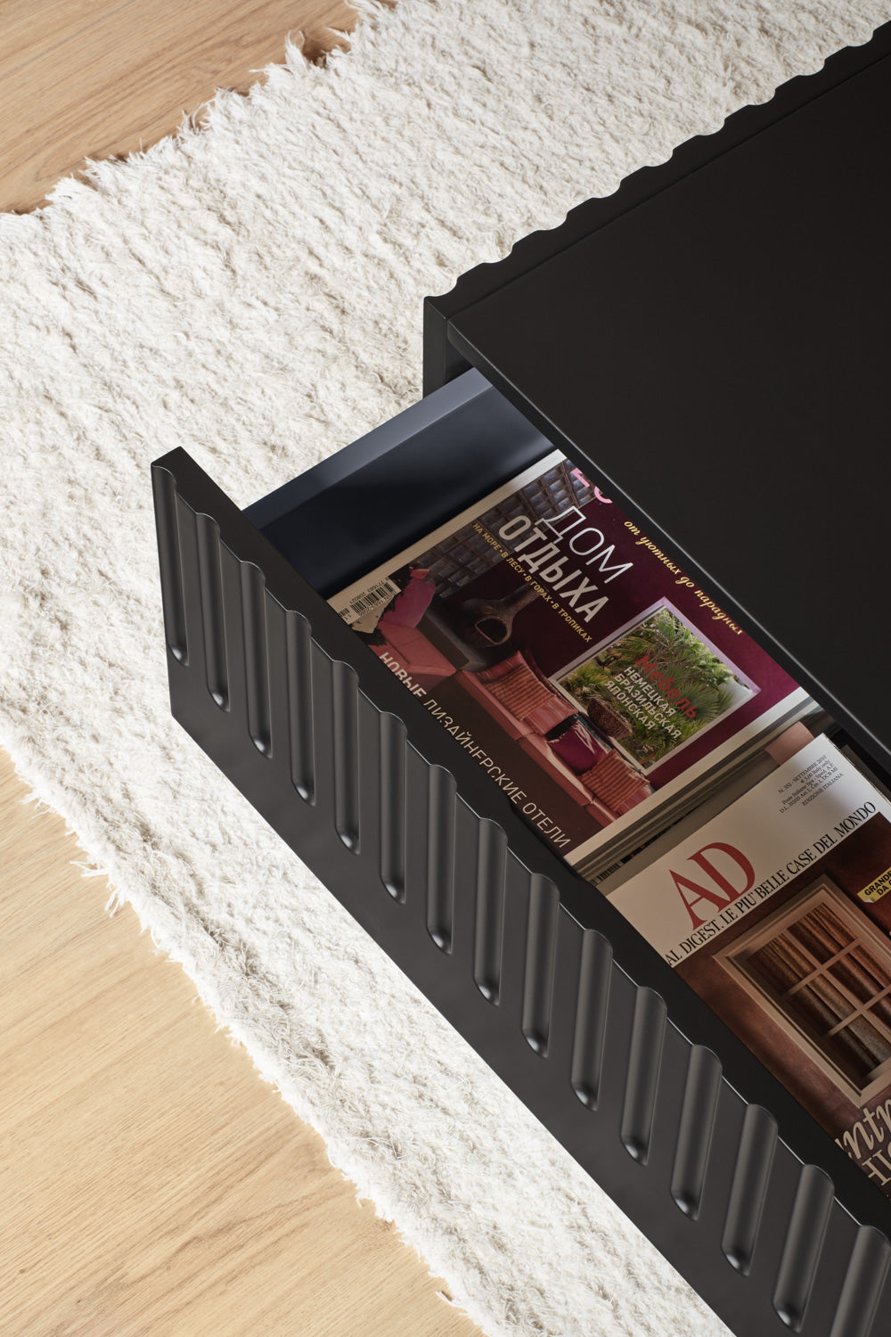Τραπεζάκι Σαλονιού. Η σειρά Doric έχει εμπνευστεί από την κλασική ελληνική αρχιτεκτονική. Έτσι, οι κάθετες αυλακώσεις του παραπέμπουν στην απλότητα και τη στιβαρότητα εκείνης της περιόδου: μία αναζήτηση ομορφιάς που βασίζεται στην αναλογικότητα της κλασικής αρχής της αρχιτεκτονικής.