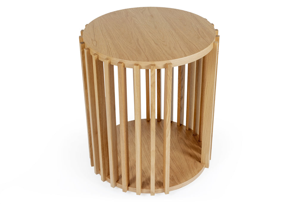 Μέρος της συλλογής επίπλων Drum, αυτό το μοντέρνο στρογγυλό τραπεζάκι σαλονιού θα προσθέσει το μοντέρνο στυλ που αναζητάτε χωρίς να το ξεπεράσετε. Ο σχεδιασμός του τυμπάνου διαθέτει φινίρισμα βελανιδιάς. Αυτό το τραπέζι διαθέτει ένα μοναδικό κυκλικό πλαίσιο με ξύλινα πηχάκια που είναι διαφανές, το οποίο δεν είναι κοινό στοιχείο στυλ με άλλα τραπέζια τυμπάνων. Αυτό θα προσθέσει μια μοναδική σχεδιαστική πινελιά στο χώρο σας. Αυτό το τραπέζι είναι αρκετά μεγάλο για να ενώσει τον χώρο σας, αλλά όχι πολύ μεγάλο για να ξεπεράσει το σχέδιο. Αυτό το κομμάτι έχει και πάνω και κάτω ράφι.