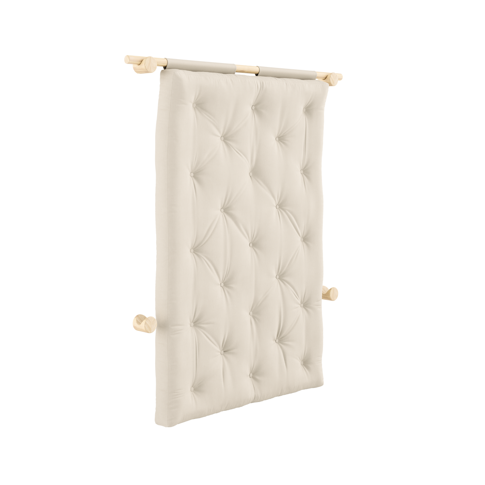 Οι τέσσερις επιτοίχιοι βραχίονες κρατούν το Hooked με ασφάλεια στη θέση τους, ενώ του επιτρέπουν να λειτουργεί ως διακοσμητικό στοιχείο στο δωμάτιο όταν αποθηκεύεται. Όταν χρειάζεστε ένα κάθισμα, απλώς μετακινήστε το στην κάτω θέση για μια άνετη ρύθμιση σαλονιού. Έτοιμοι για ύπνο; Απλώς ξεδιπλώστε το στρώμα στο πάτωμα – και έχετε ένα άνετο κρεβάτι έτοιμο σε δευτερόλεπτα.