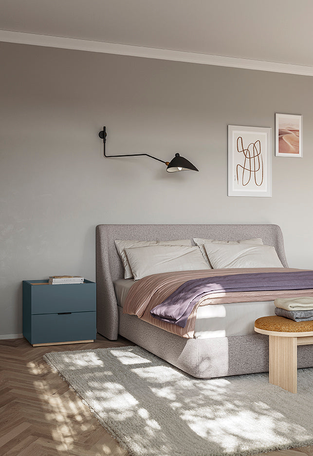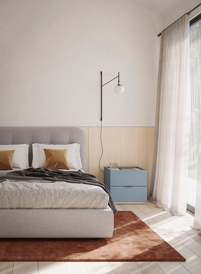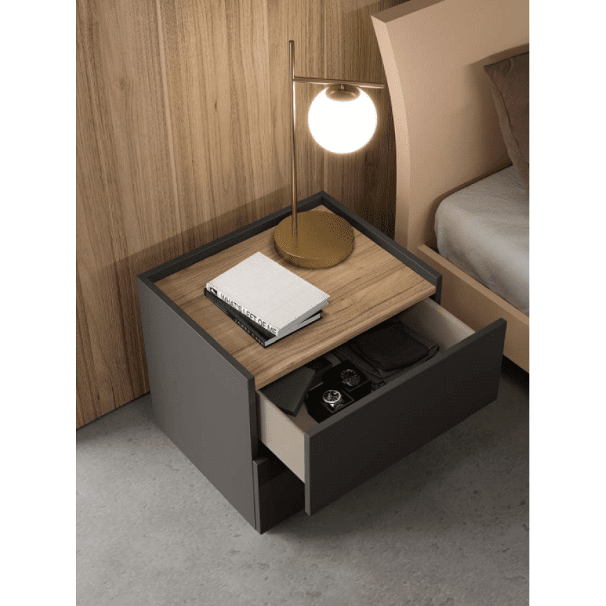 Η ιδιαιτερότητα αυτού του κομοδίνου βρίσκεται σίγουρα στο καπάκι και τη βάση, όπου μπορείτε να επιλέξετε εάν θα κάνει διχρωμία ή θα ταιριάζει με το υπόλοιπο κομοδίνο.