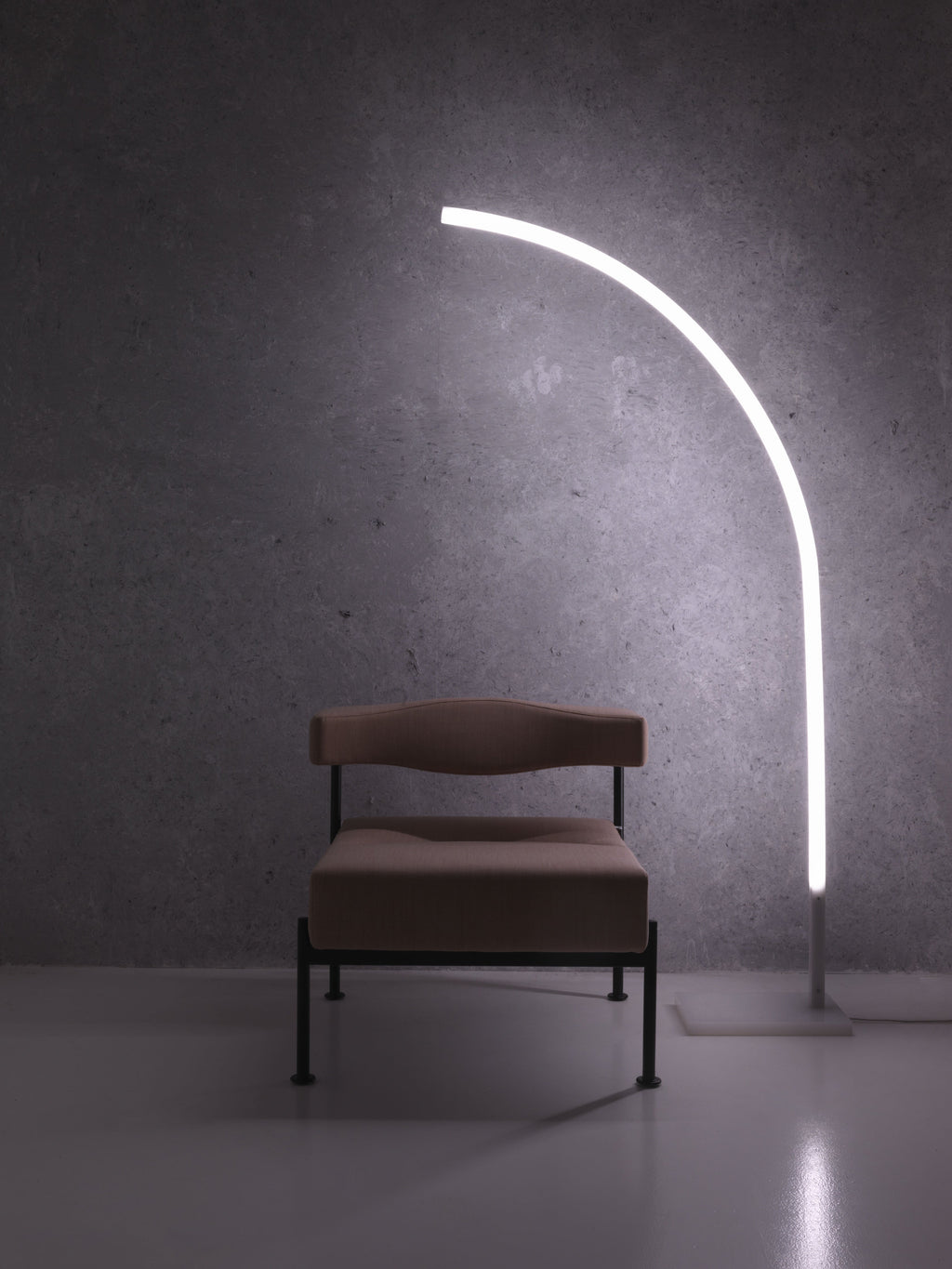 Ένα ξεχωριστό φωτιστικό, ένα αιχμηρό σώμα φωτός. To Lazer είναι ένα διακριτικό και μοναδικό φωτιστικό δαπέδου, με μία ιδιαίτερη διάχυση φωτός. Μεταλλική ή methacrylate βάση.