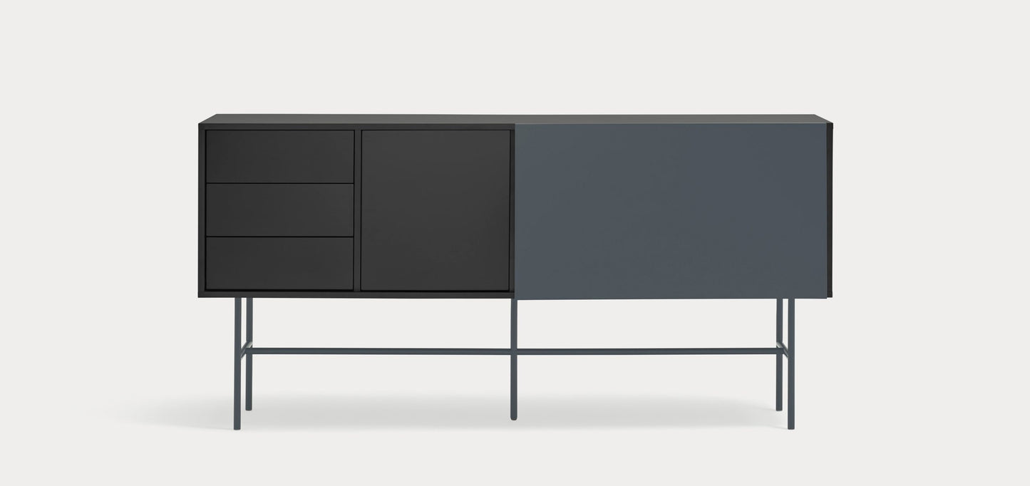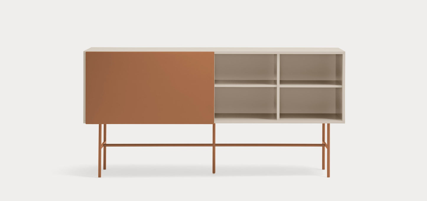 Ο τρόπος με τον οποίο αυτή η πόρτα γλιστρά πάνω από τον μπουφέ Nube, αποκαλύπτοντας και κρύβοντας τα διάφορα τμήματα του εσωτερικού του, είναι εμπνευσμένος από τον τρόπο που τα σύννεφα κινούνται στον ουρανό.