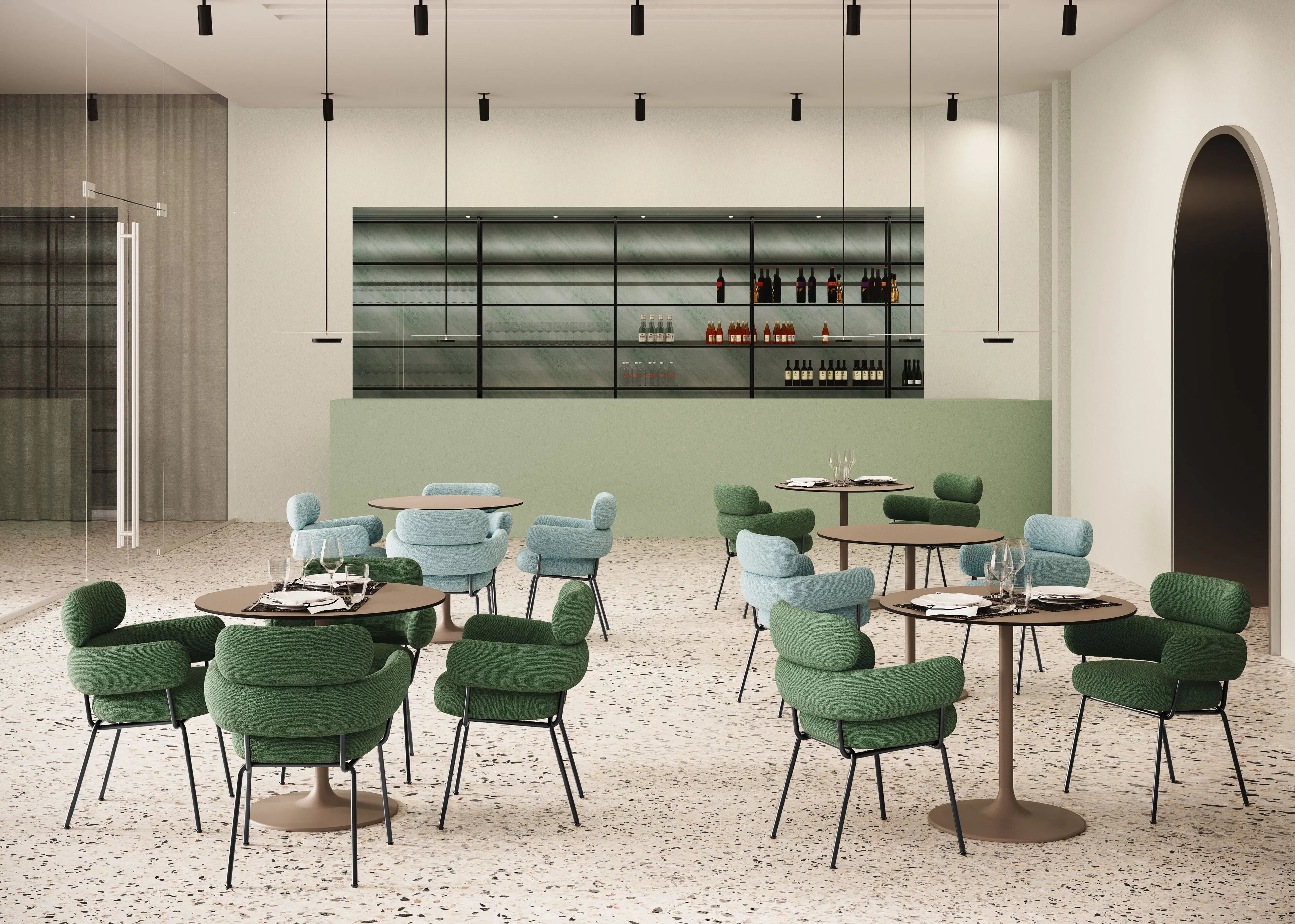Διαθέσιμη με ή χωρίς μπράτσα, η Takumi είναι μια μικρή πολυθρόνα σχεδιασμένη για τον τομέα Horeca, αλλά ταιριάζει και σε πιο οικεία περιβάλλοντα. Η μεγάλη γκάμα υφασμάτων και το χαλύβδινο σκελετό, το οποίο μπορεί να βαφτεί σε διάφορα χρώματα, συνδυάζονται για να δημιουργήσουν εκλεπτυσμένες ή ποπ εκδοχές ανάλογα με το γούστο ή την εσωτερική διακόσμηση.