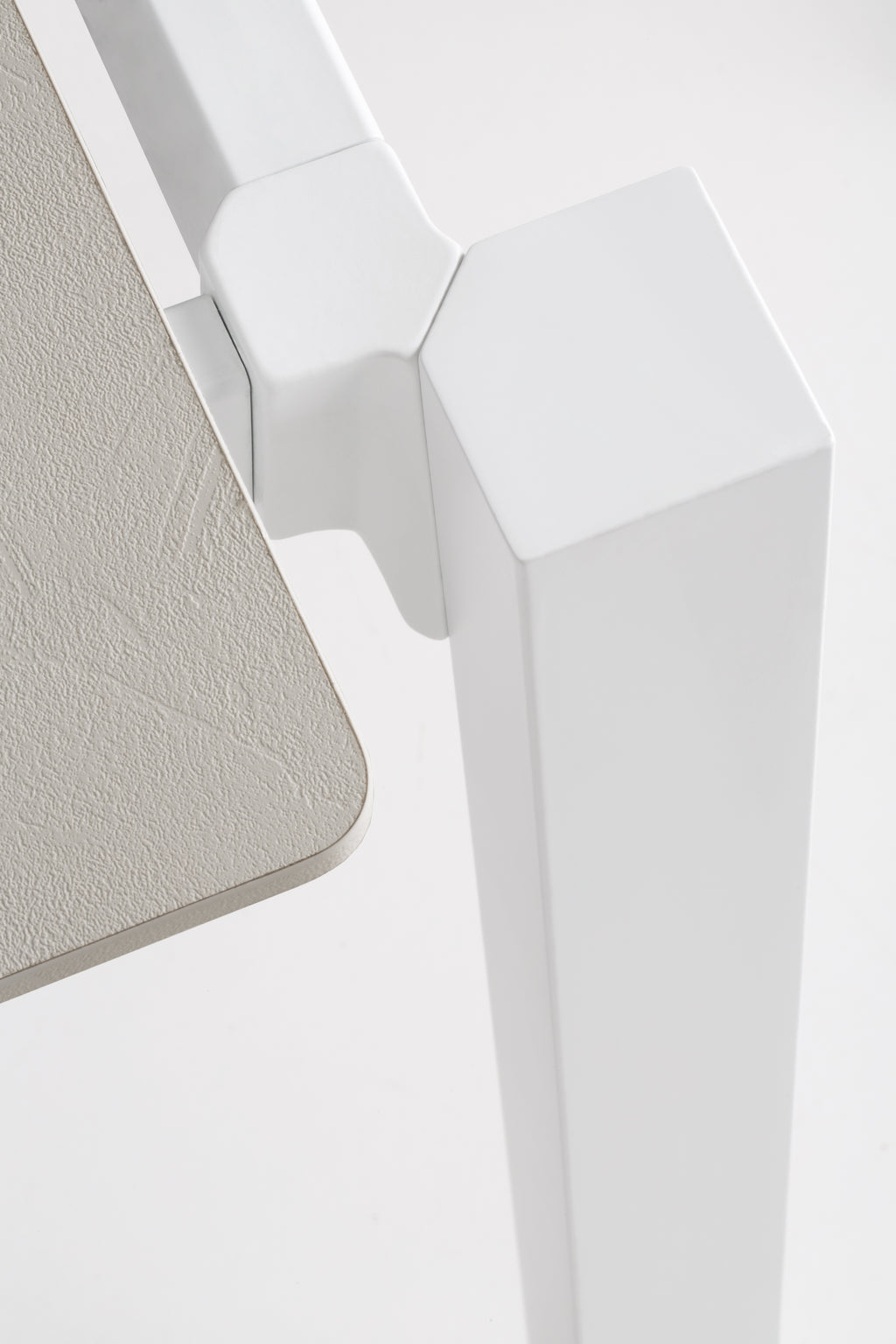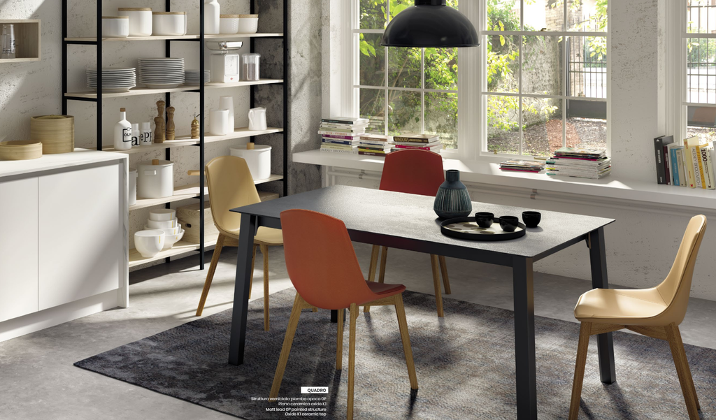 Το τραπέζι QUADRO προσφέρει αμέτρητους συνδυασμούς χρωμάτων-υλικών για την επιφάνεια και τη βάση. Σε διάφορες διαστάσεις, για να προσαρμόζεται σε κάθε ανάγκη. Τα ελαφρώς κεκλιμένα πόδια είναι το χαρακτηριστικό του τραπεζιού.