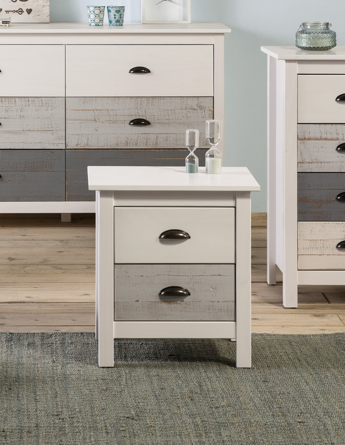 Το ξύλινο κομοδίνο Romantica έχει 2 συρτάρια.