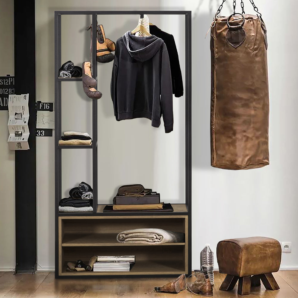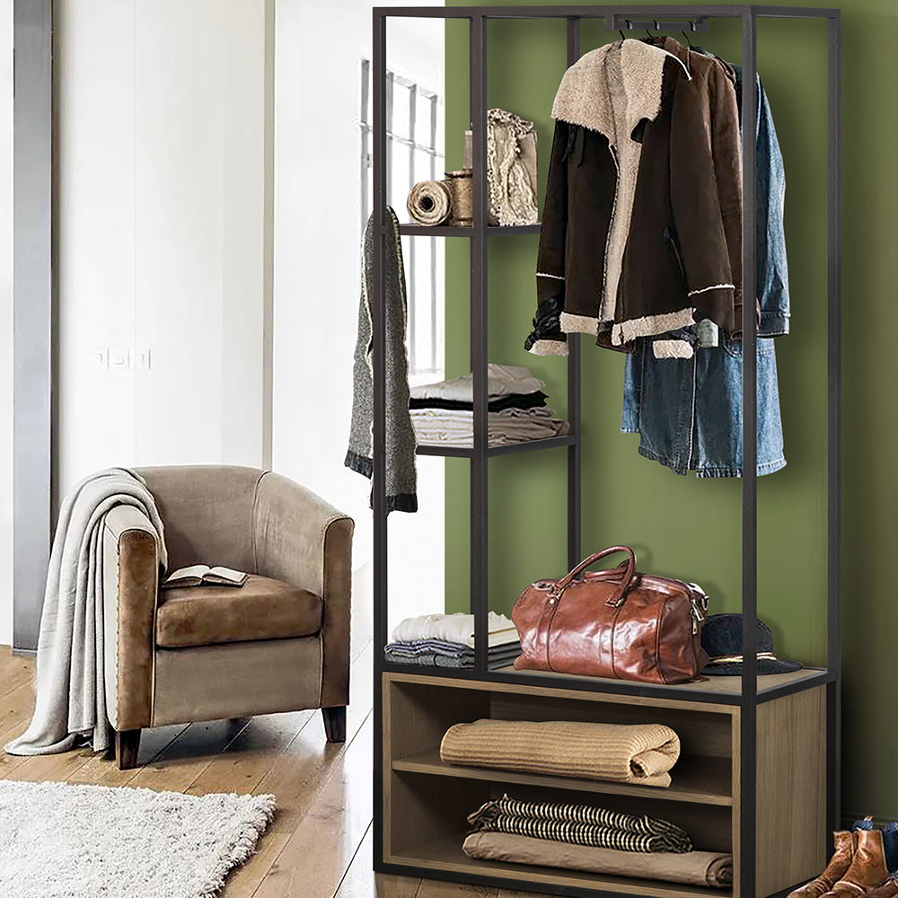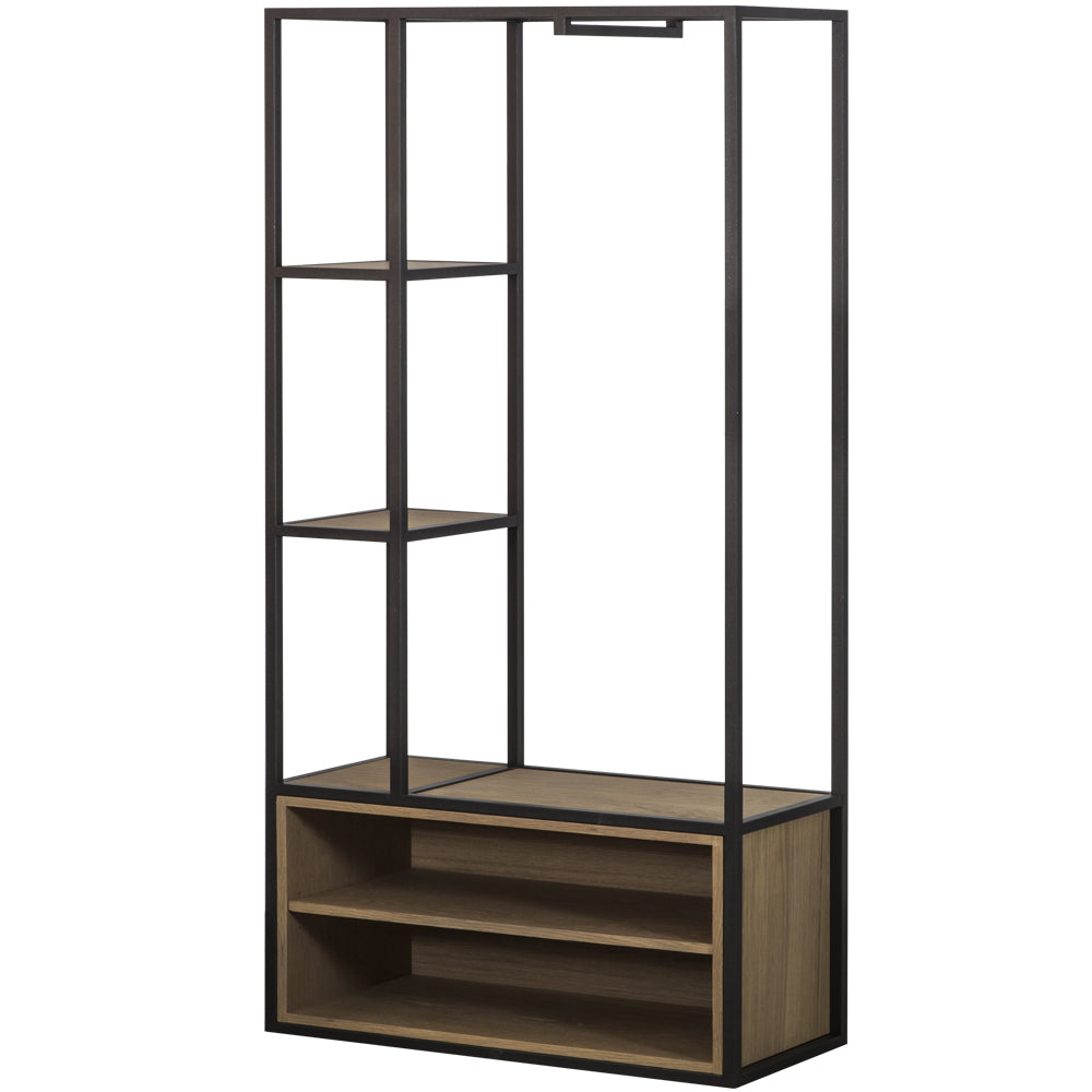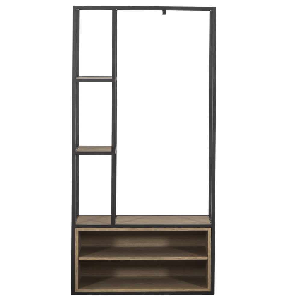 Με 5 ράφια, μια ξύλινη προθήκη στο κάτω μέρος καθώς και την κρεμάστρα του, μπορεί να τοποθετηθεί ως έπιπλο εισόδου, στην κρεβατοκάμαρα, στο γραφείο ή σαν διαχωριστικό χώρου στο σαλόνι σας.