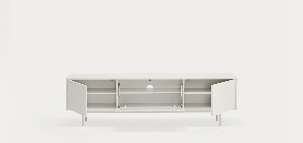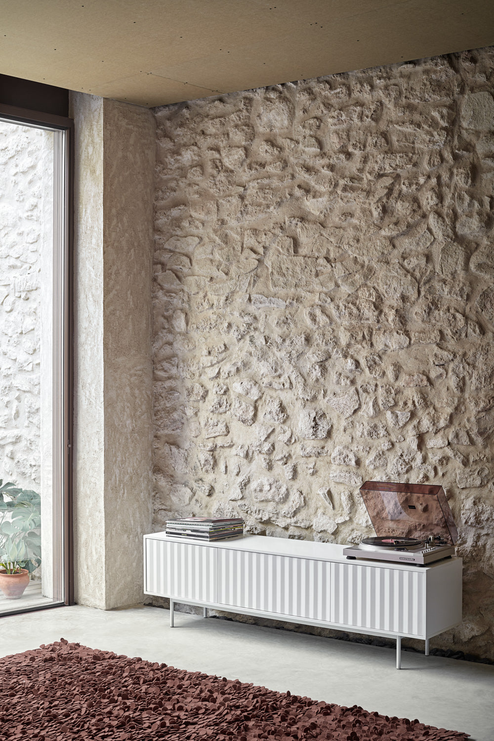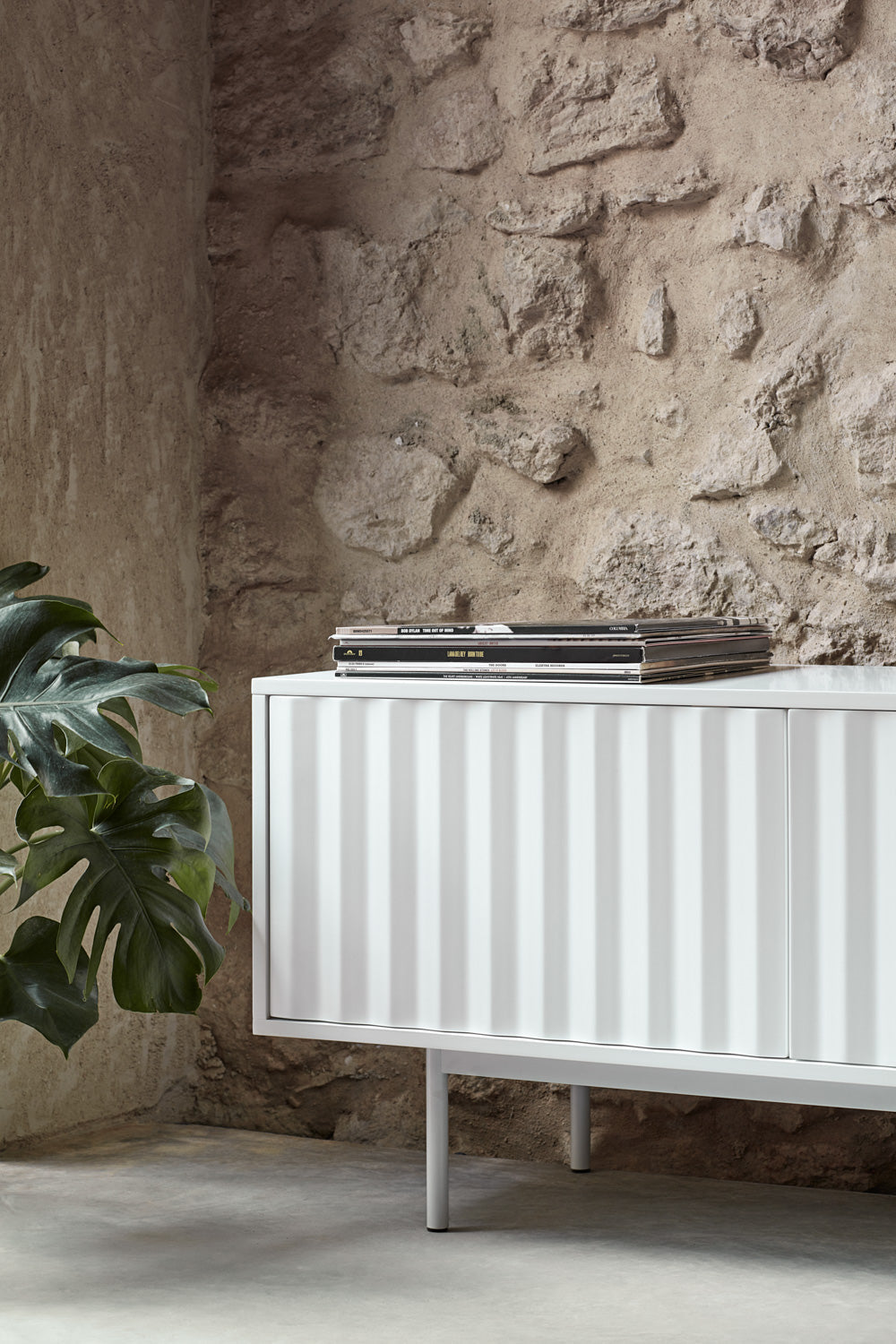 Έπιπλο TV. Η σειρά Sierra είναι εμπνευσμένη από τα διακυμάνσεις στα ύψη, στα οποία η αντίληψη των όγκων, επηρεάζεται από τις φωτεινές εναλλαγές. Η μεταλλική βάση και το σχέδιο στις πόρτες κάνει αυτό το έπιπλο τηλεόρασης ξεχωριστό.