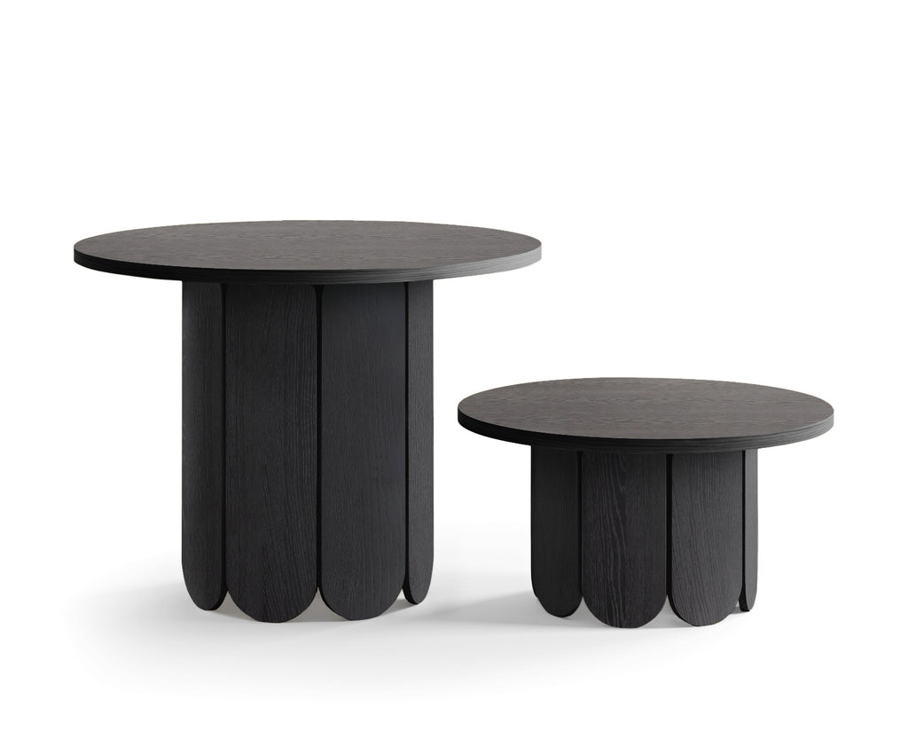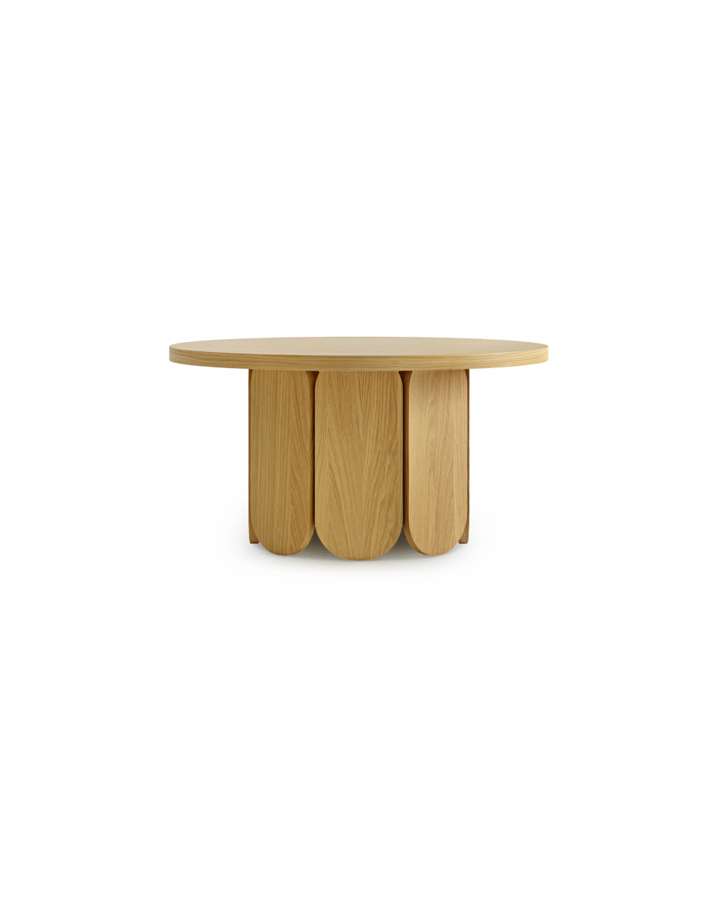 Τραπεζάκι σαλονιού από ξύλο βελανιδιάς.Στρογγυλό τραπέζι με καπλαμά βελανιδιάς με μεγάλη βάση.