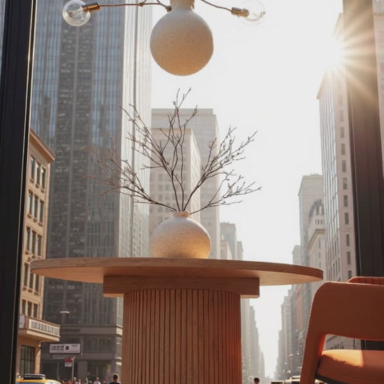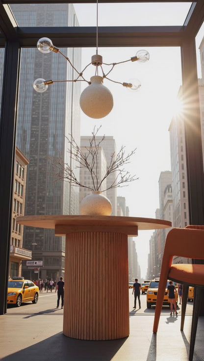 Πρακτική και μοντέρνα τραπεζαρία με βασική διάμετρο 120 εκ. και με επεκτεινόμενα φύλλα (+40 εκ.) έως 160 εκ. που μπορεί να φιλοξενήσει 6-8 άτομα. Τα φύλλα αποθηκεύονται κάτω από το καπάκι του τραπεζιού, κάτι που προσθέτει ακόμη περισσότερη λειτουργικότητα και άνεση. Με το σχήμα της είανι ιδιαίτερα κατάλληλη και για μικρότερους χώρους, που όμως απαιτούν και την ύπαρξη έξτρα θέσεων στο γεύμα. Σε ματ βαφή.