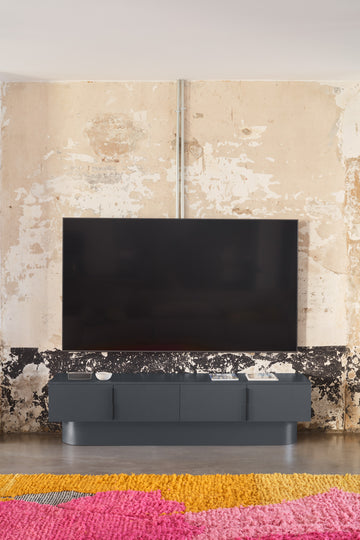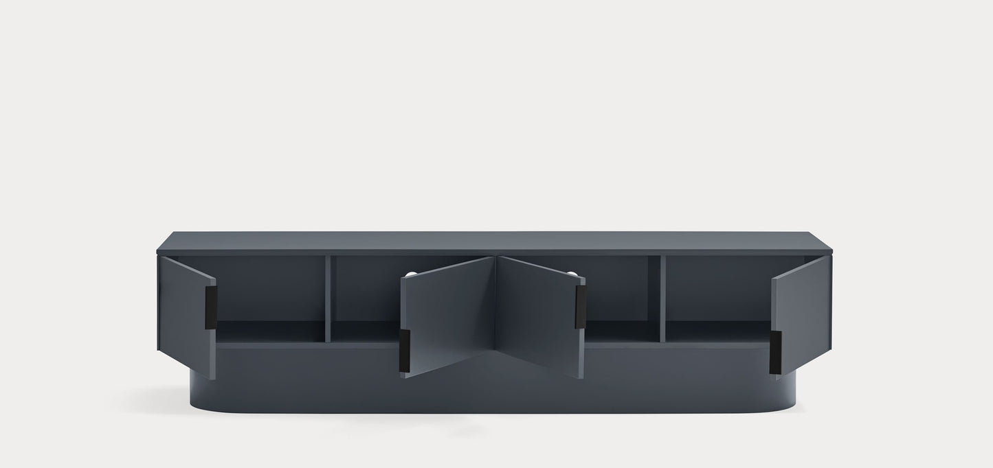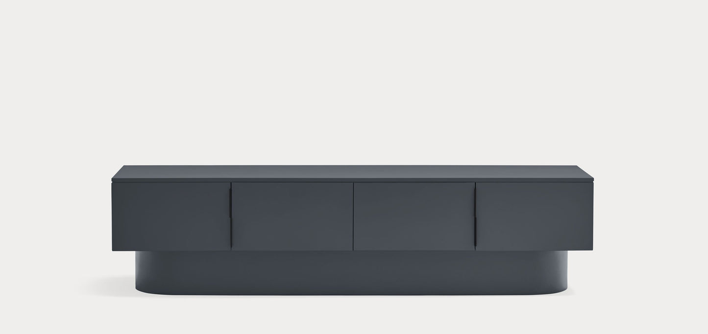 Έπιπλο TV. Με τη σχεδόν μονολιθική εμφάνισή του, το Τοτέμ μας καλεί να το συλλογιστούμε σαν να ήταν ένα γλυπτό έργο, ξεπερνώντας τα όρια μεταξύ λειτουργίας και μορφής.