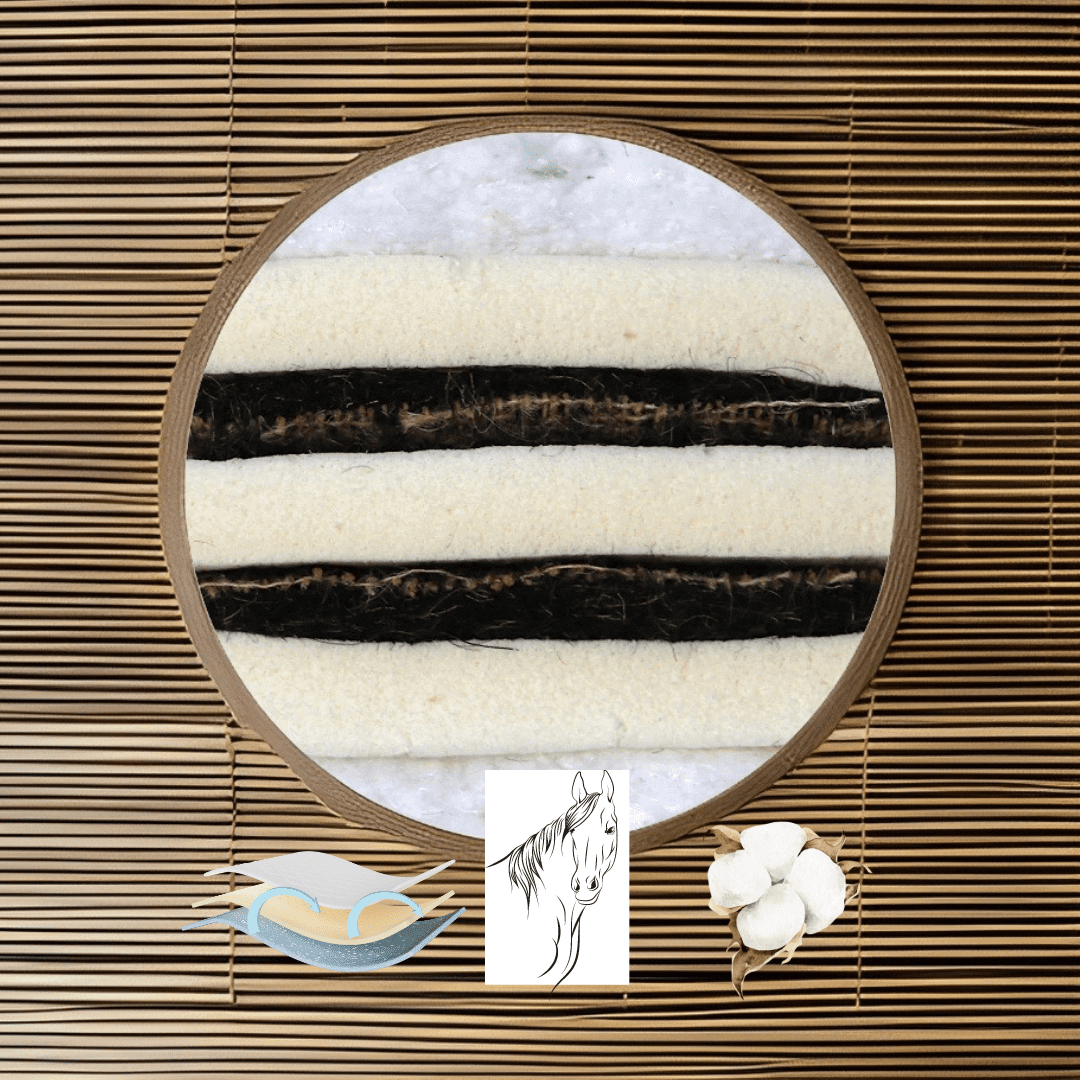 Το Triple latex futon μας είναι ένα στρώμα κρεβατιού από βαμβάκι και μαλλί πάχους 18 cm με πυρήνα από αφρό λατέξ και τρίχες αλόγου, κληρονομεί όλες τις καλές ιδιότητες ενός παραδοσιακού ιαπωνικού φουτόν. Το Triple latex futon θα σας δώσει μια απαλή-μέτριας σκληρότητας, επιφάνεια ύπνου.Το βαμβάκι στο φουτόν θα προσαρμοστεί στο σώμα σας και θα το στηρίξει, το μαλλί βοηθά στη δημιουργία ενός καλού κλίματος, το λατέξ θα απομονώσει κάθε κίνηση ενώ η τρίχα αλόγου μονώνει από το κρύο και ταυτόχρονα διοχετεύει τη θερμότητα και την υγρασία μακριά.